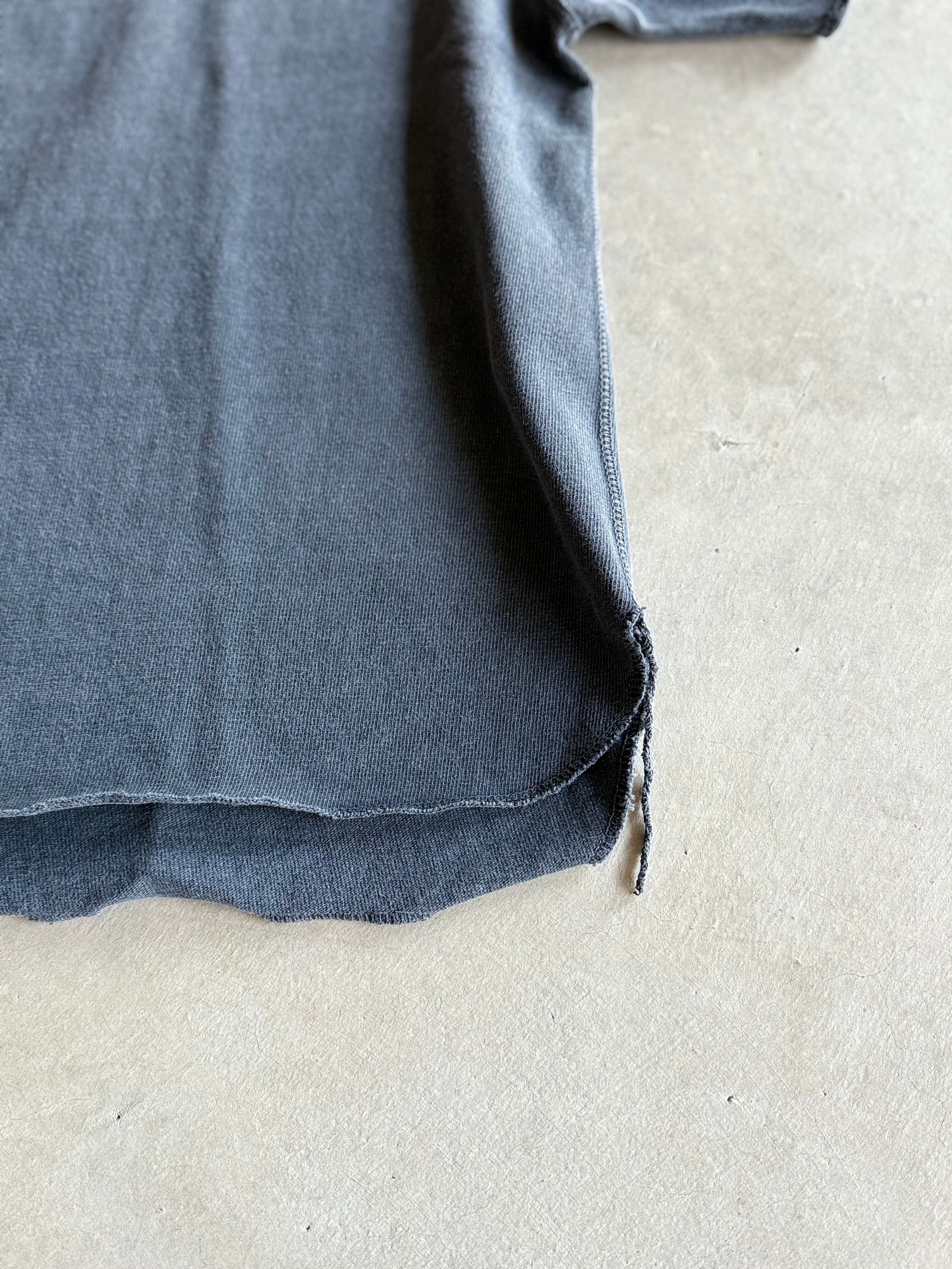 やや肉厚な天竺素材を使用した、リラックス感のあるラグランスリーブのロングスリーブTシャツ。定番のTシャツとは一線を画す深みのある独自の色合い、ロックミシンでのみ処理した裾など、よりリラックスした雰囲気が魅力の一着。