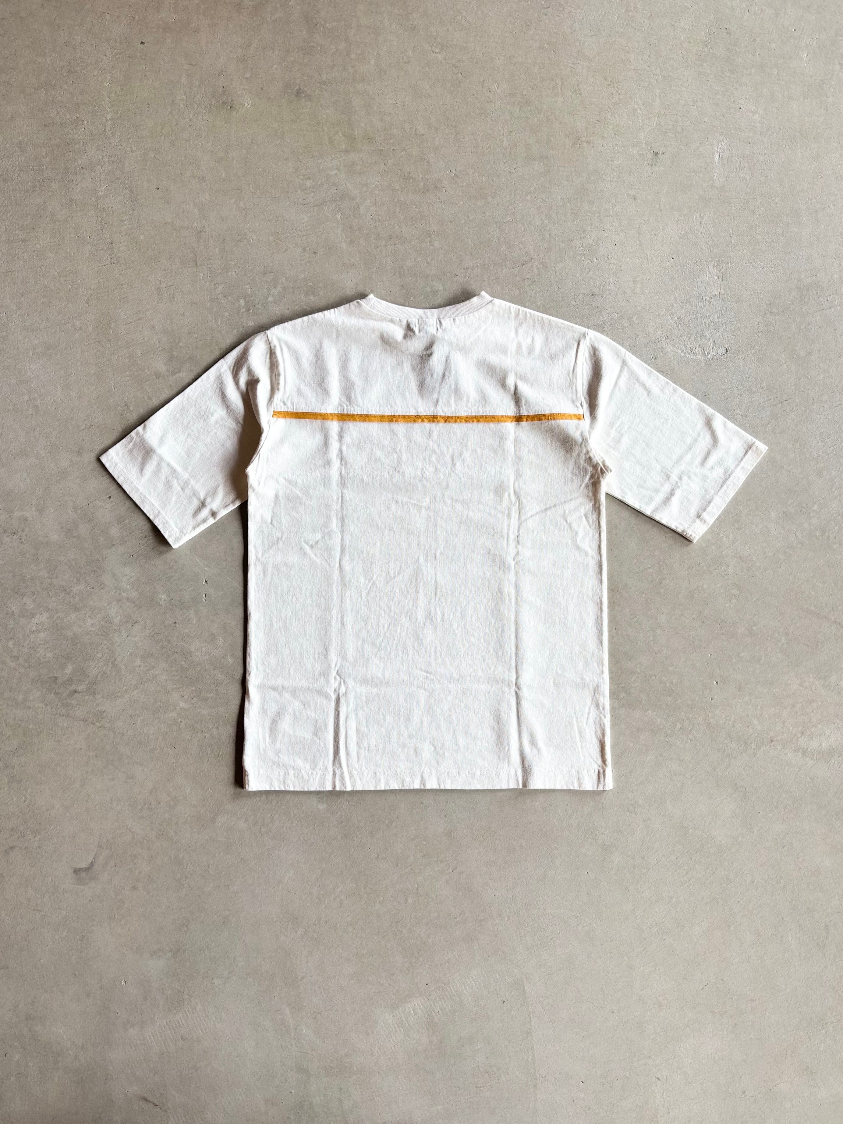 かすれた大きめロゴと切り替え部分に挟んだテープがポイントの雰囲気抜群な1枚。