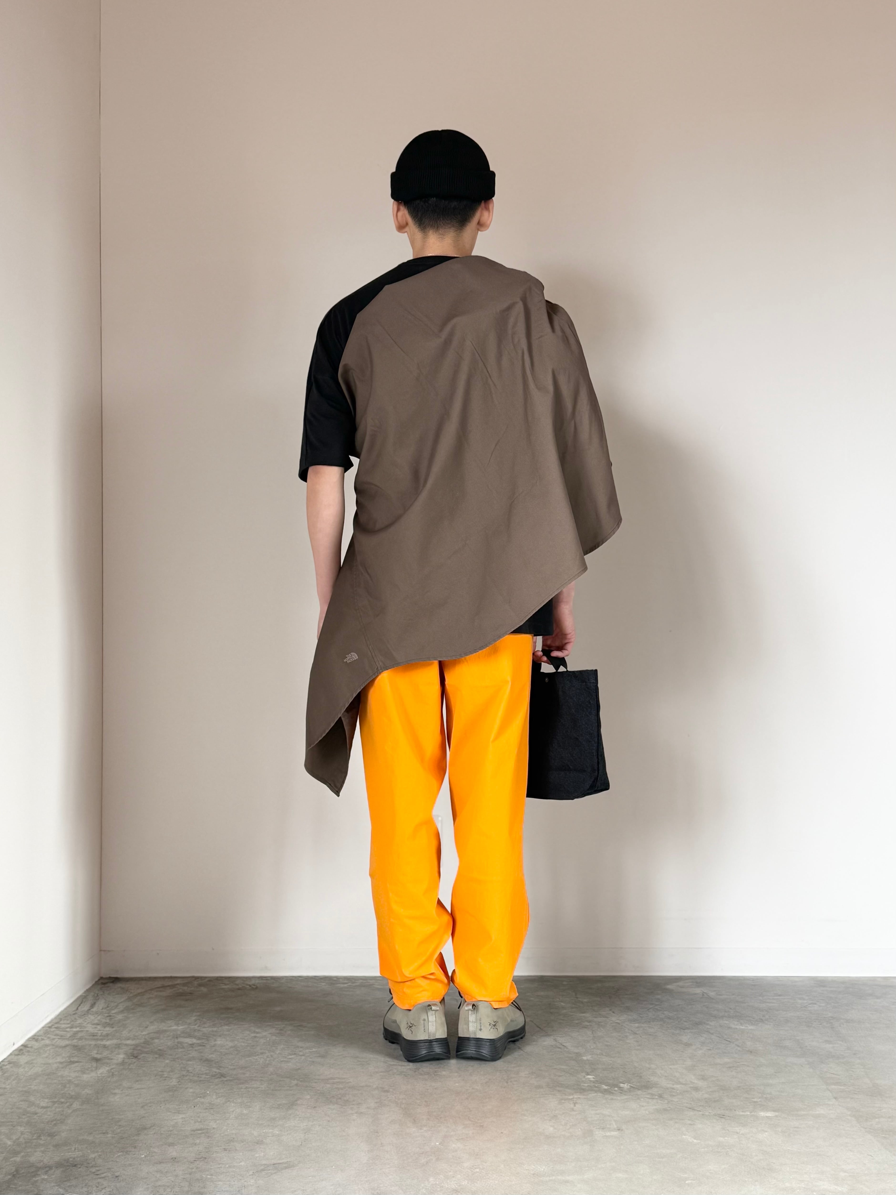 リップストップのリサイクルナイロン生地は適度なハリ感があり、撥水加工を施しているため多少の雨は弾きます。