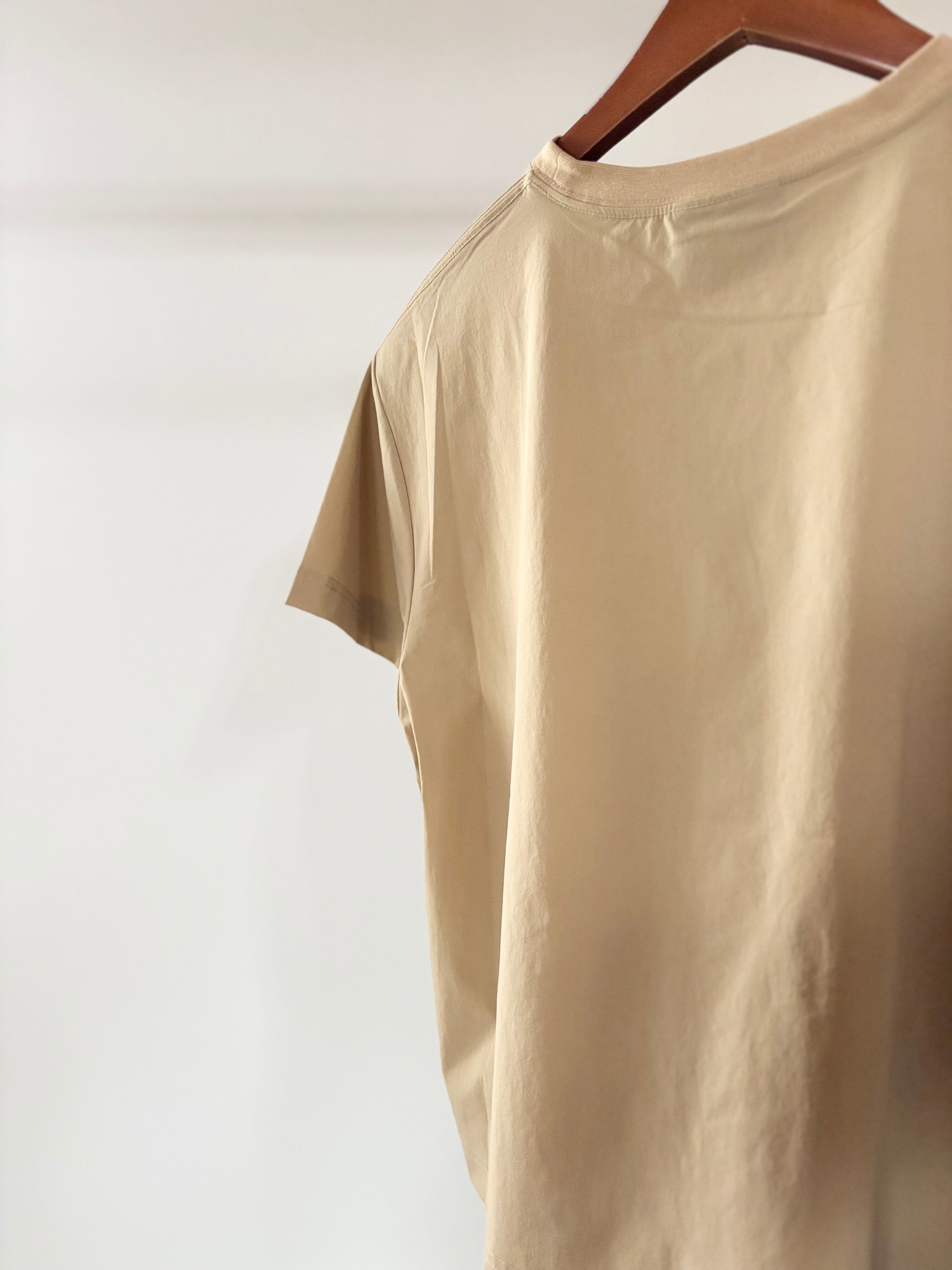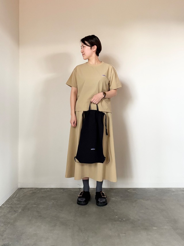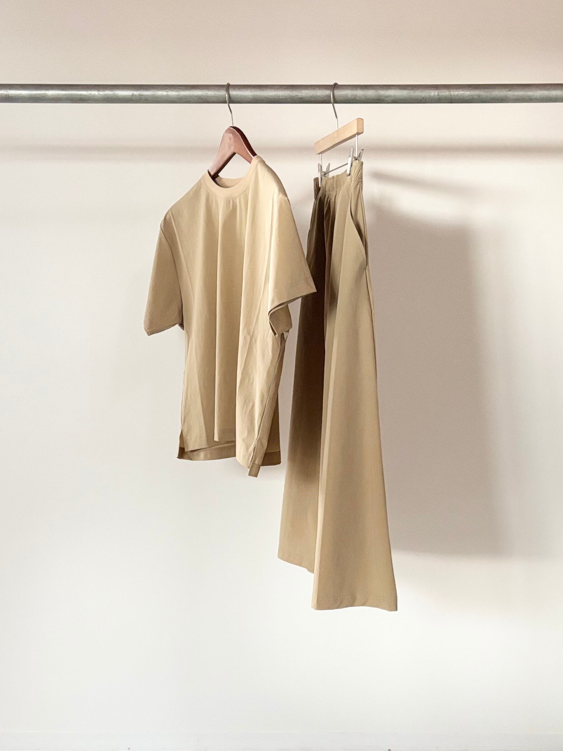 Tシャツはボックスシルエットで身幅にゆとりがありつつ、ショート丈なのでどんなボトムスに合わせても好バランス。