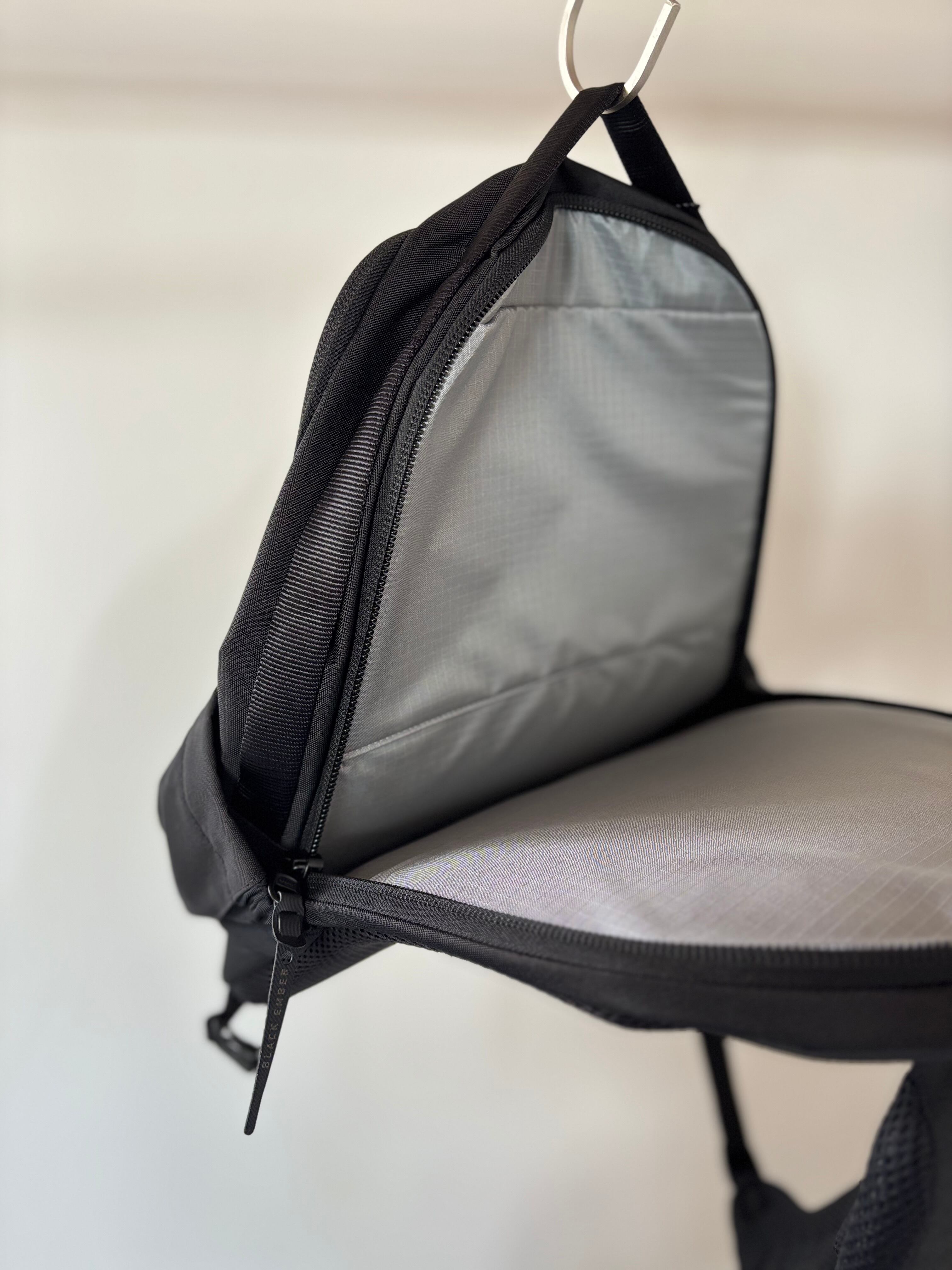 内部にはジャケットや本などのギアを収納できる十分なスペースがあり、アルミニウム製キーフック付きの必需品ポケットとストレッチメッシュの収納ポケットも付いています。