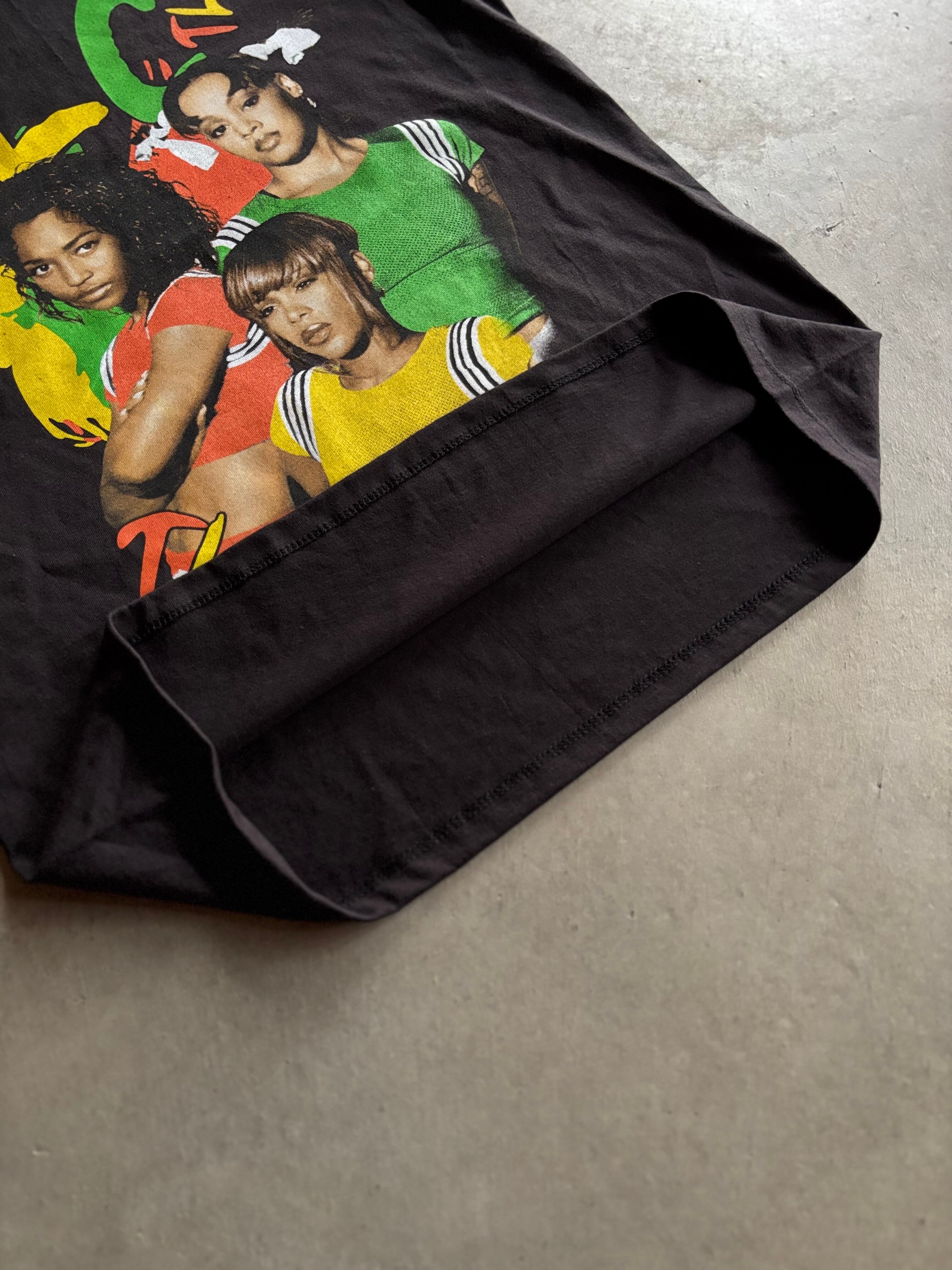 現在までに4つのグラミー賞を受賞し、全世界で6500万枚以上のアルバムを売り上げた史上最高の記録を持つR&BガールズグループTLCが大胆にプリントされたインパクト抜群のTシャツとなっております。