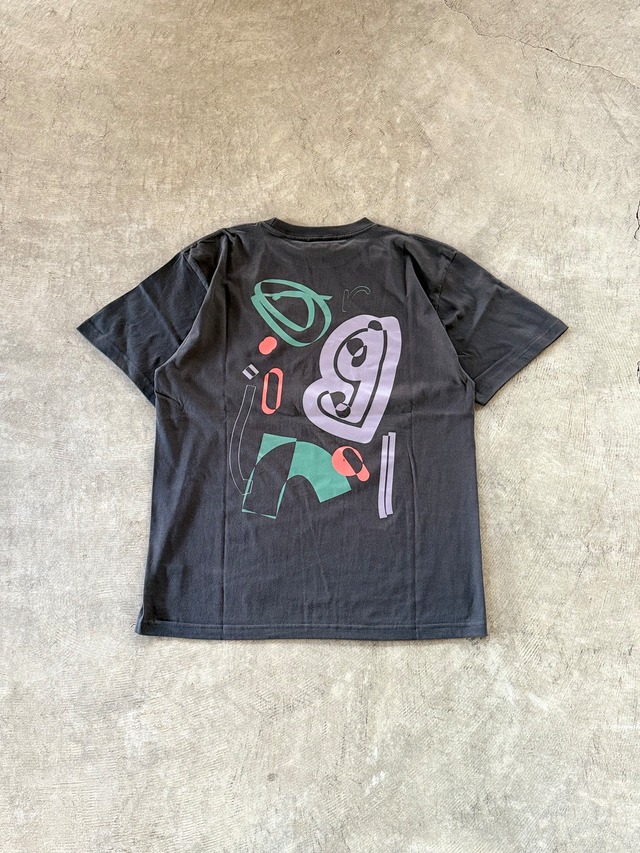 もつれや絡まり、複雑性を表現したようなグラフィックがフロント、バック両面にプリントされたTシャツ。