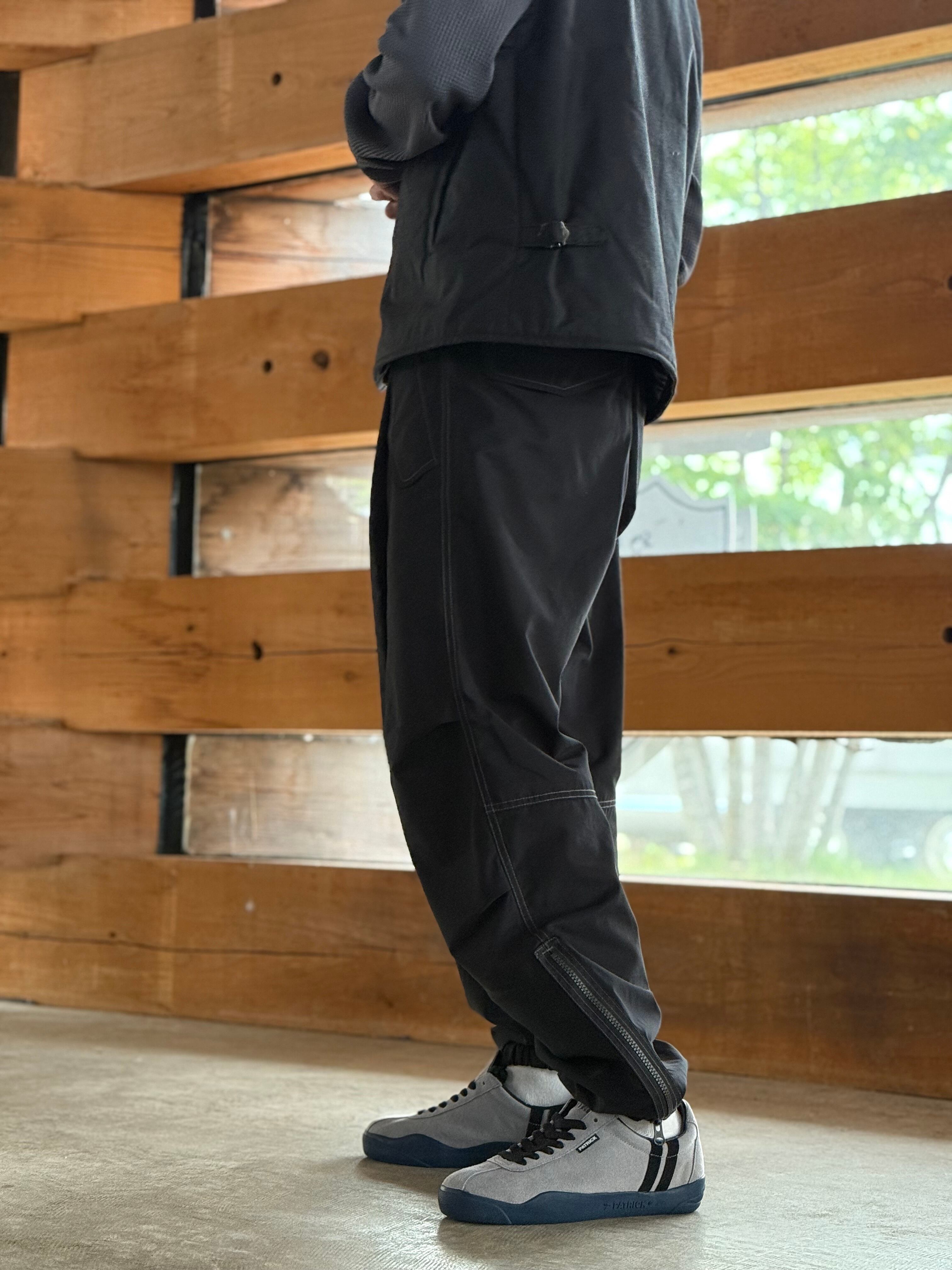 ミリタリーパンツからインスピレーションを得た、裾にファスナーの付いたパンツです。