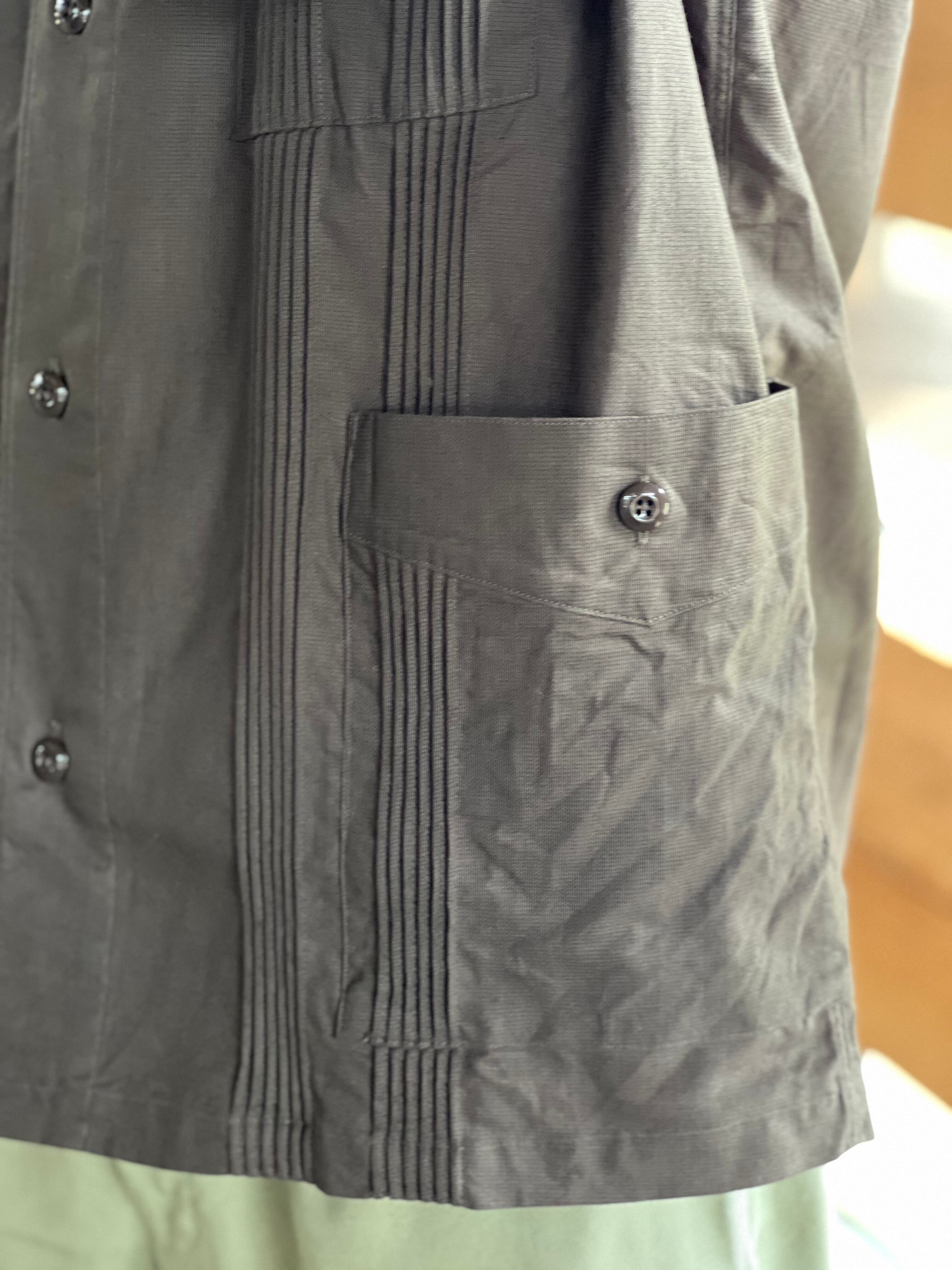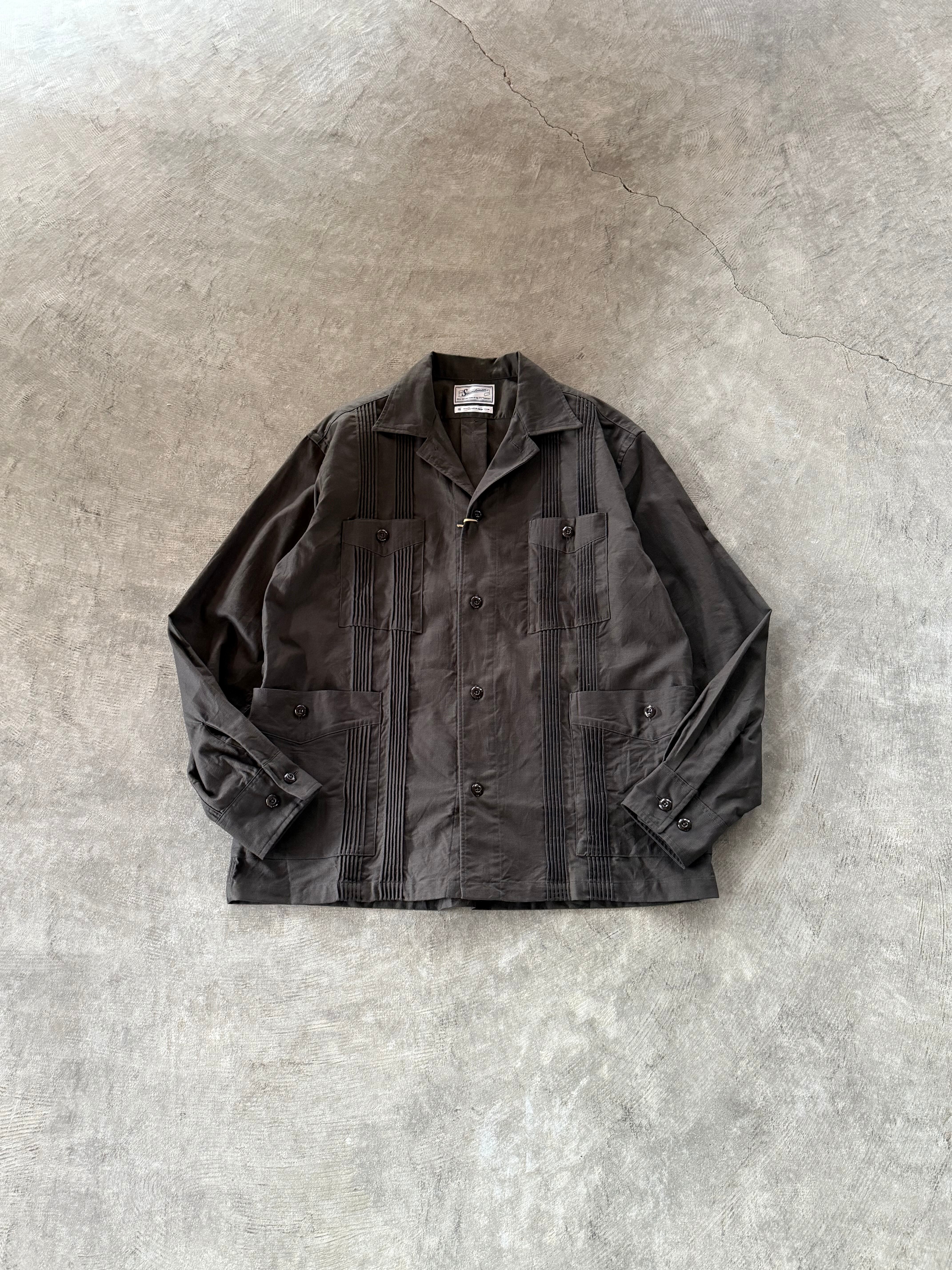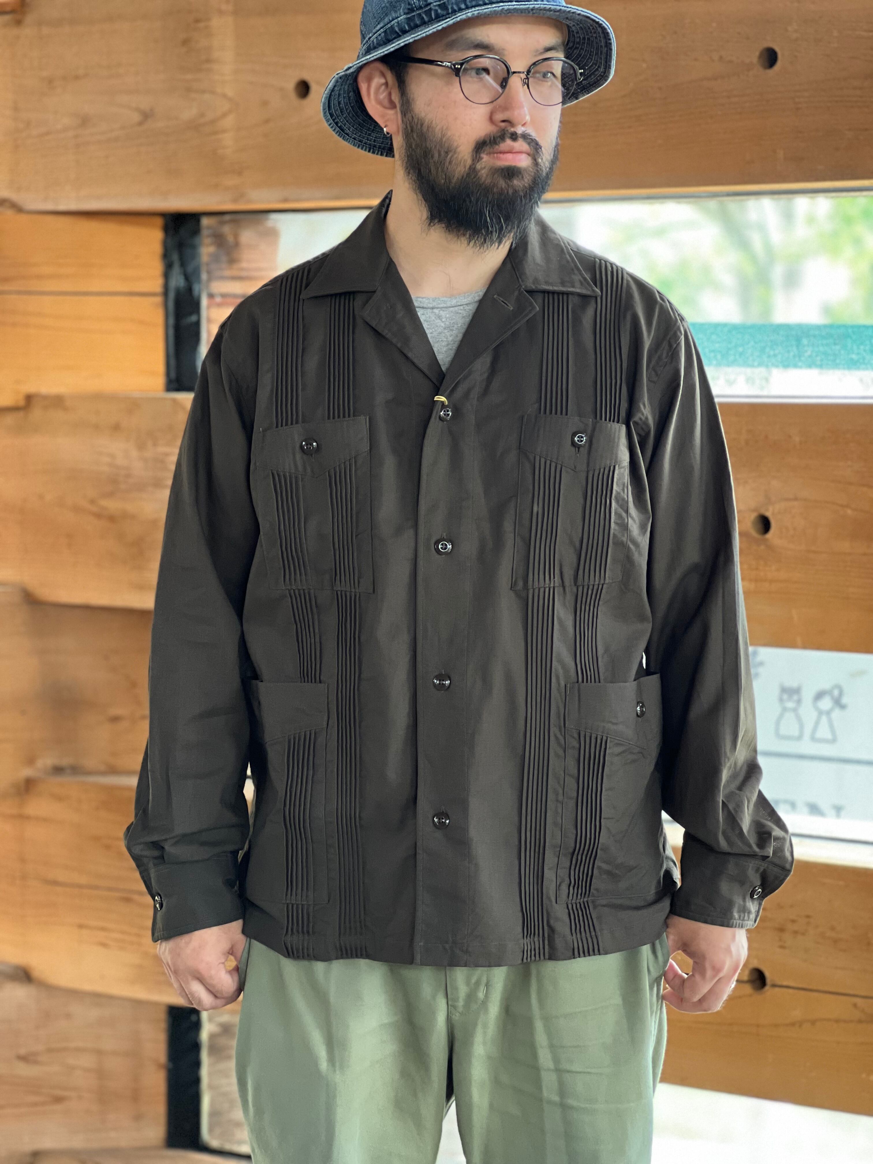 オープンカラー、4つポケット、そして象徴的なピンタックを叩いた身頃のキューバシャツをイメージソースとした長袖シャツジャケット。