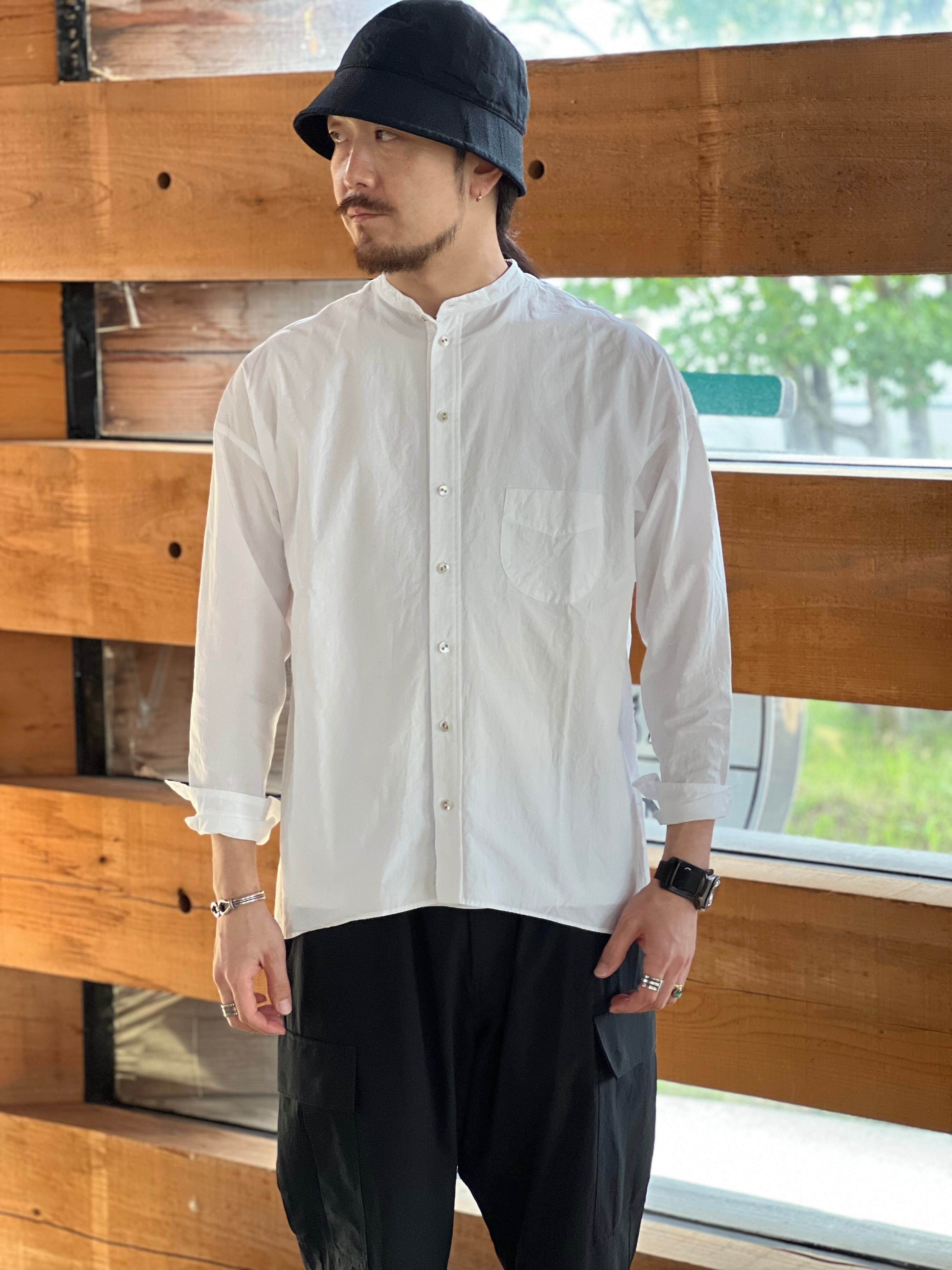 NATIC MARINEより 自然シワ加工タイプライタースタンドカラーシャツが入荷。