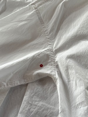 型は肩を落としたゆったり目のドロップショルダースタンドカラーシャツになります。