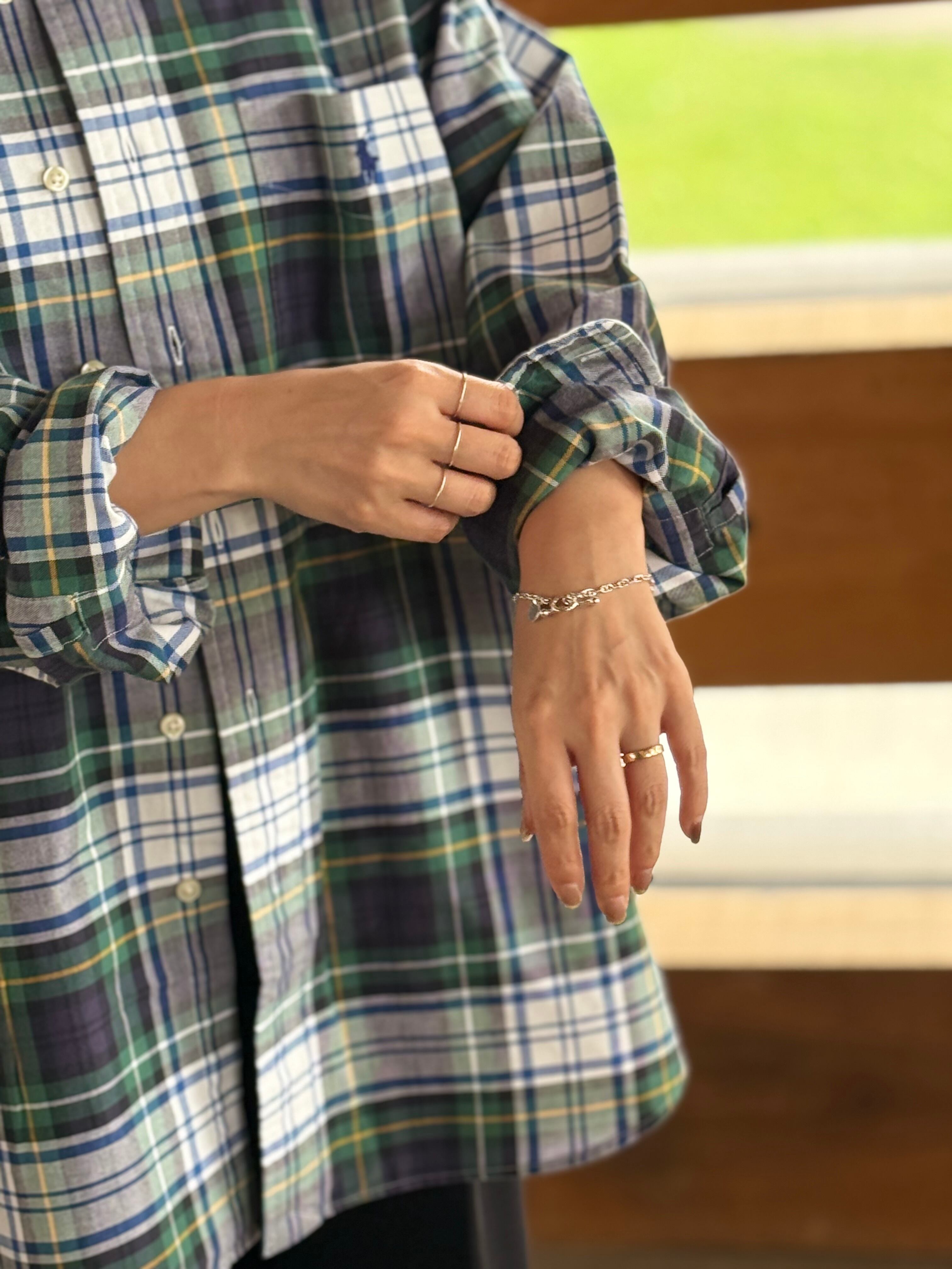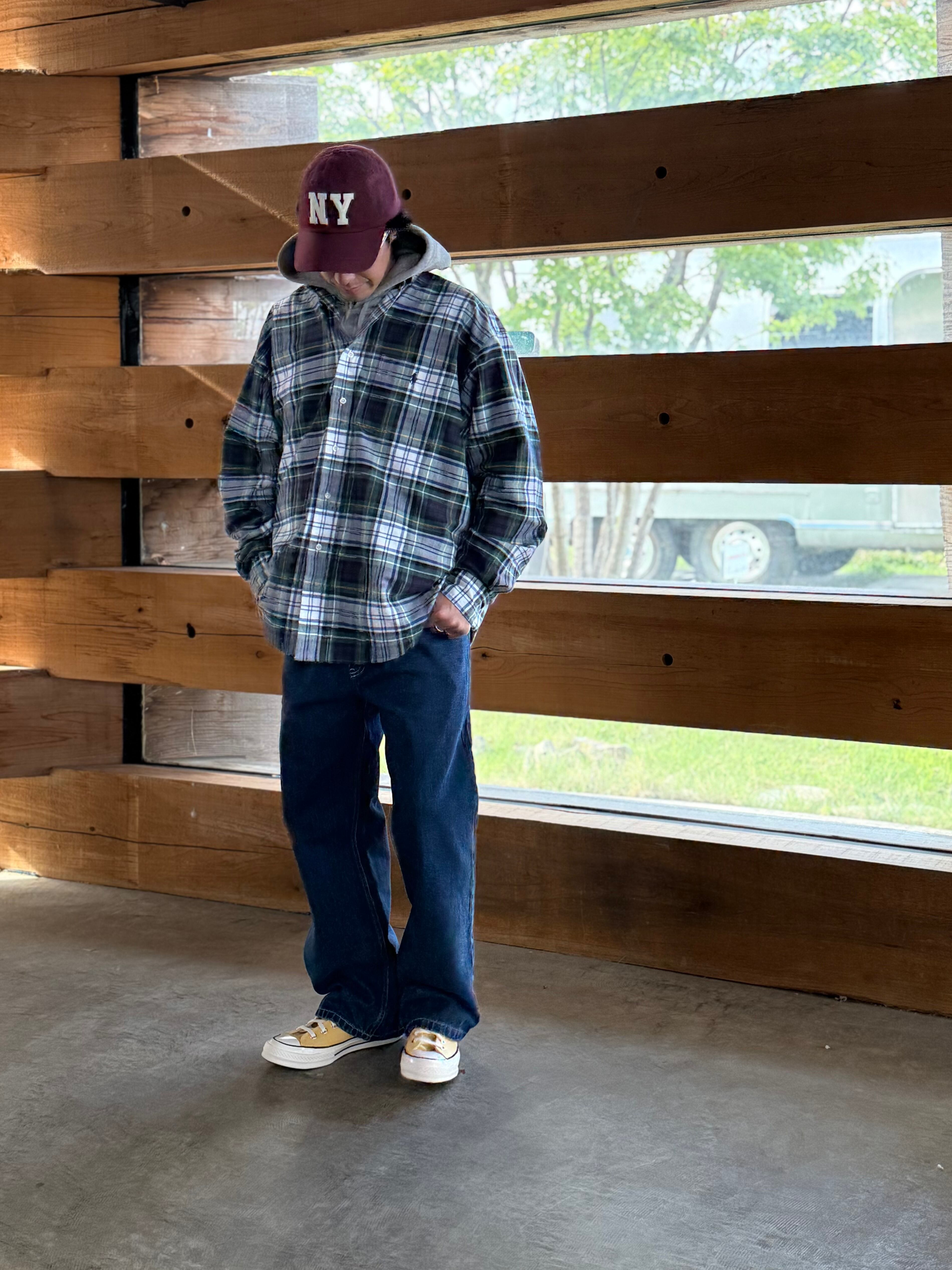 クラシックなマドラスチェックにキャップで90sスケーターのような雰囲気がオススメです。