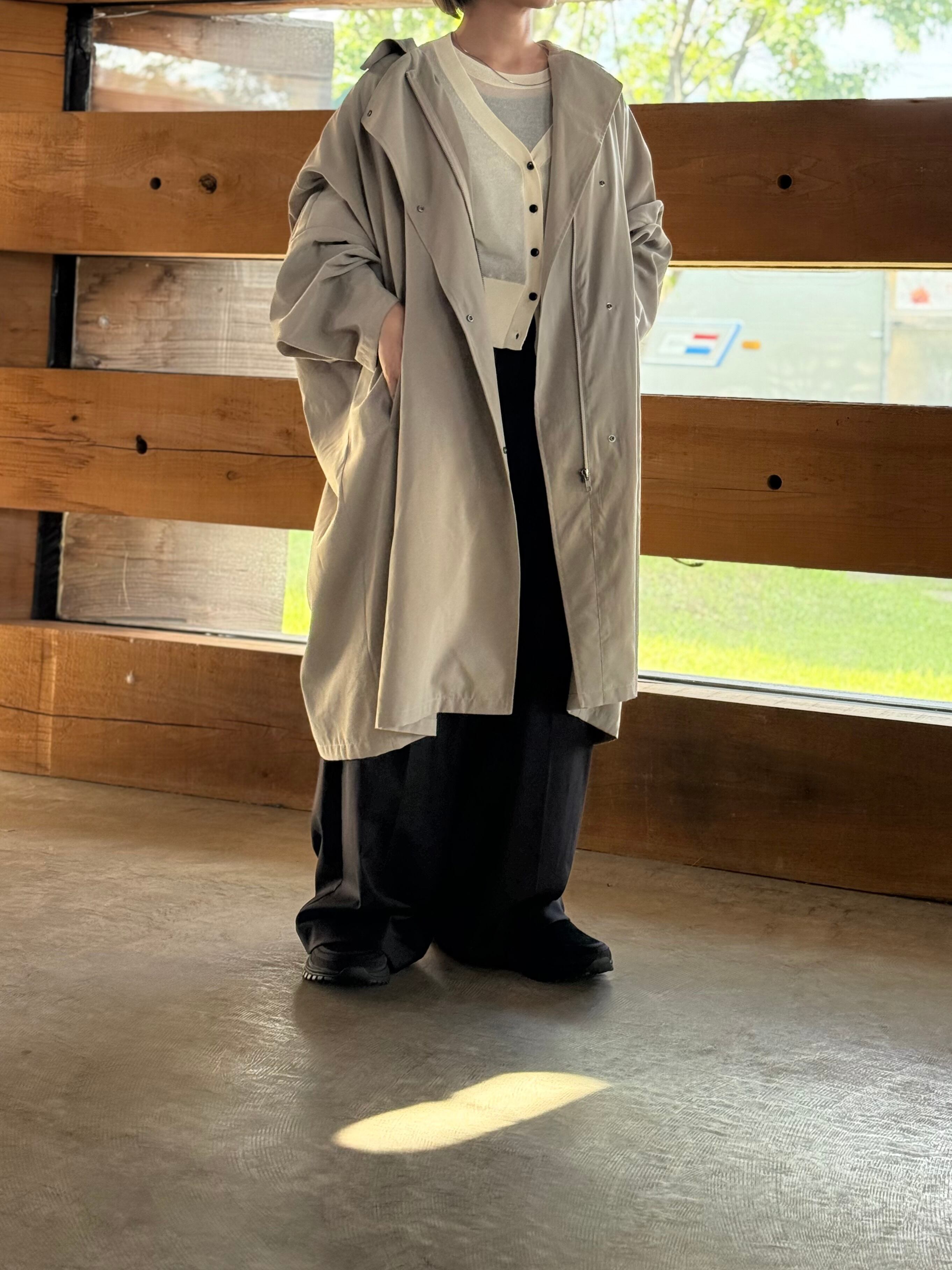 身幅たっぷりでとても軽く、羽織るだけでニュアンスのあるシルエットに仕上がります。