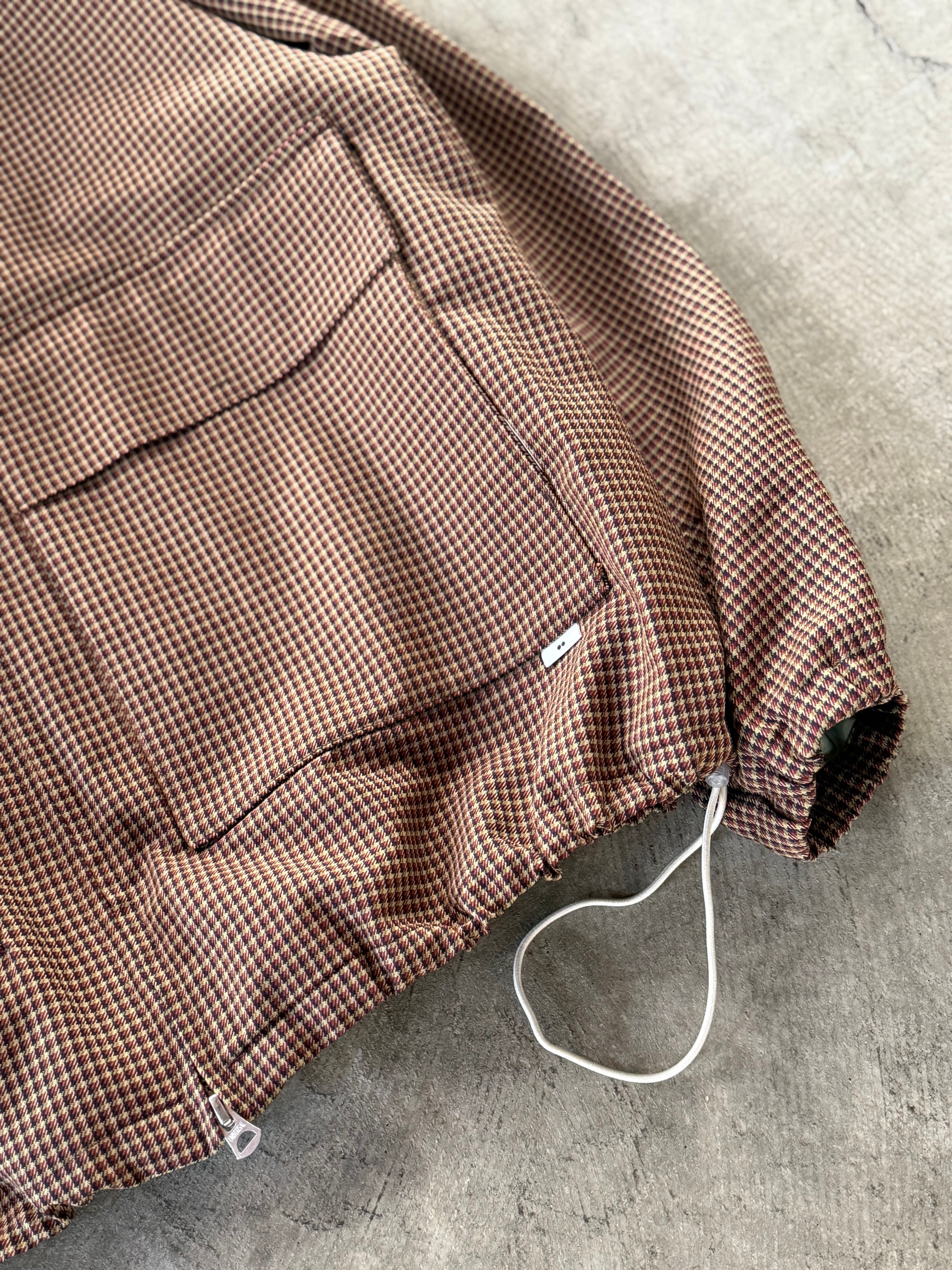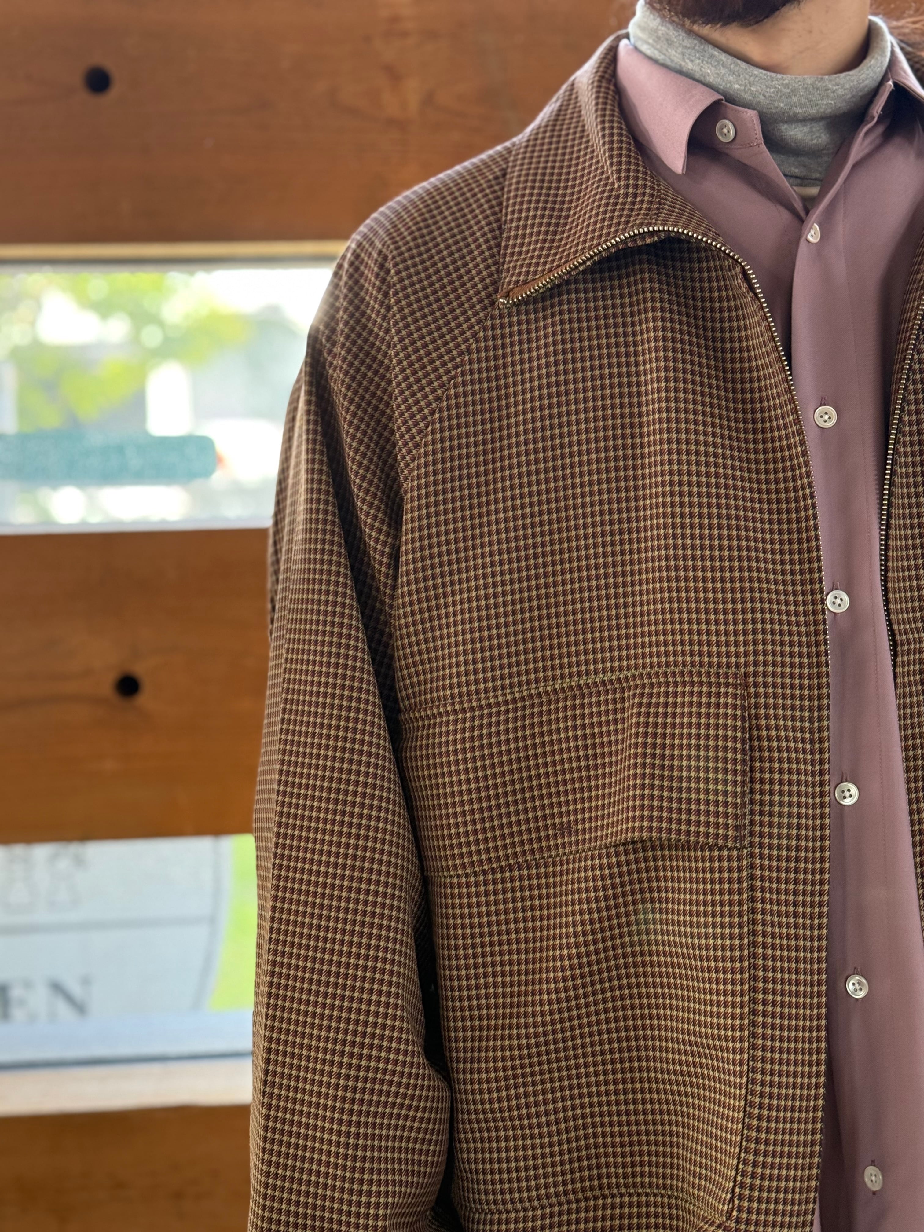 丁寧に刈り取られた上質なウールと環境に配慮したリサイクルポリエステルの混紡糸で織り上げられたクラシカルなチェック柄のブルゾン。