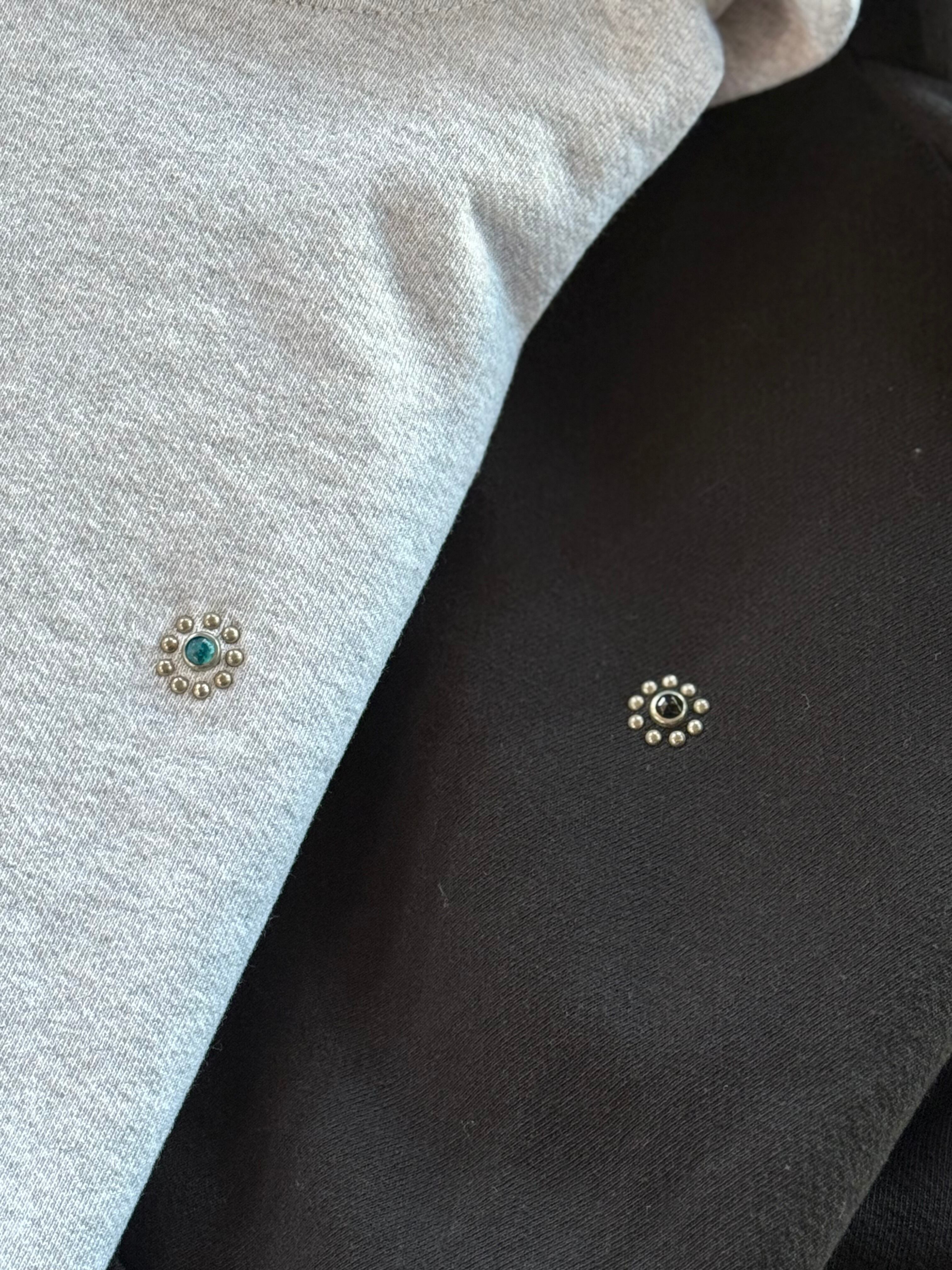 デザインは左胸に、#Flower Stoneのスタッズワークを施したタイプとなっており、左袖にもHTCロゴの外枠の刺繡がされたスペシャルなコラボアイテムです!