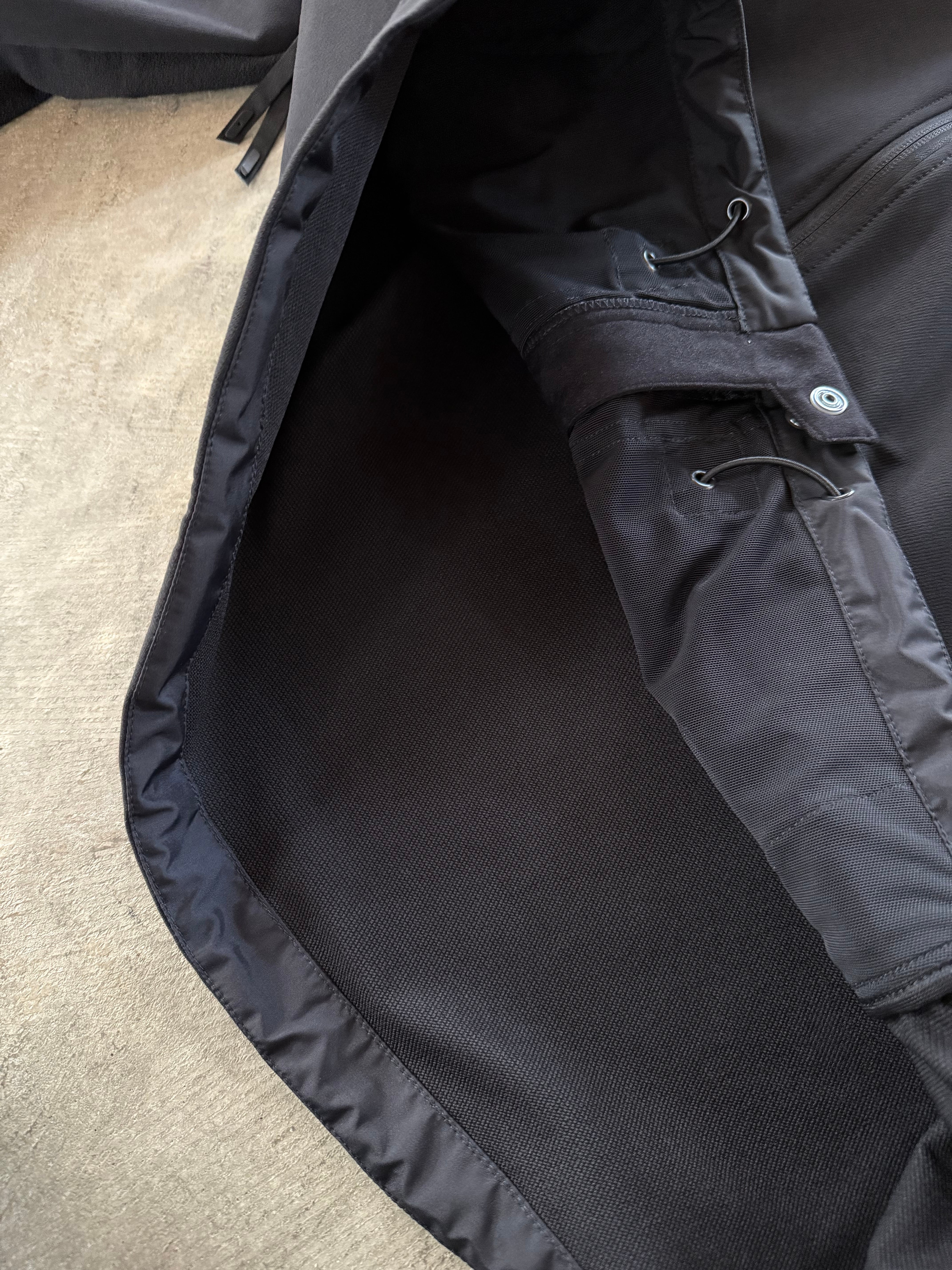 襟の内側は滑らかな生地を使用し肌触りも優しく、フードは収納型で衿部分に内蔵されてあり、いざという時に取り出しも容易に。