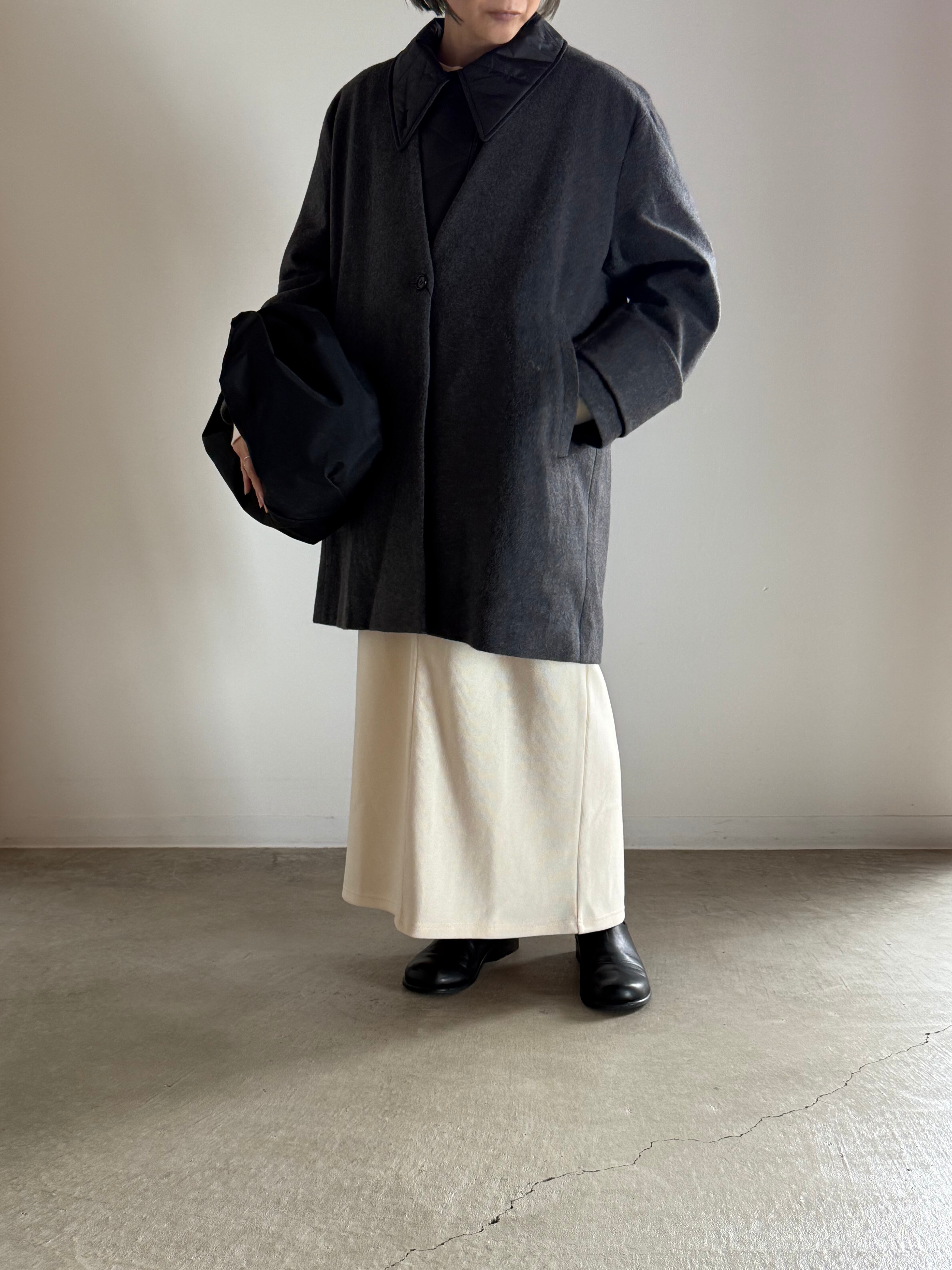 肩、アームにゆとりがあり、ゆるめのインナーとも合わせやすいシルエットです。