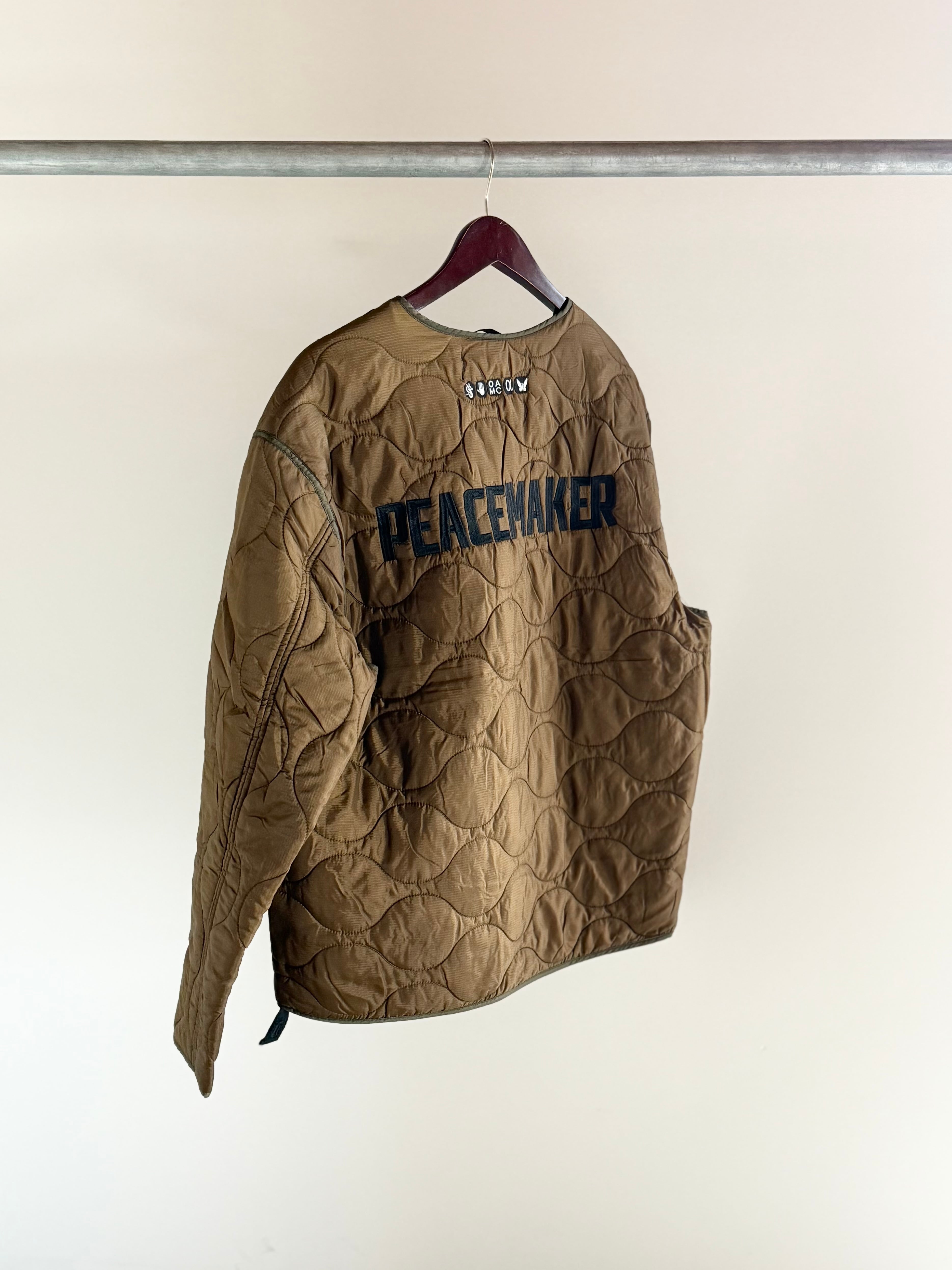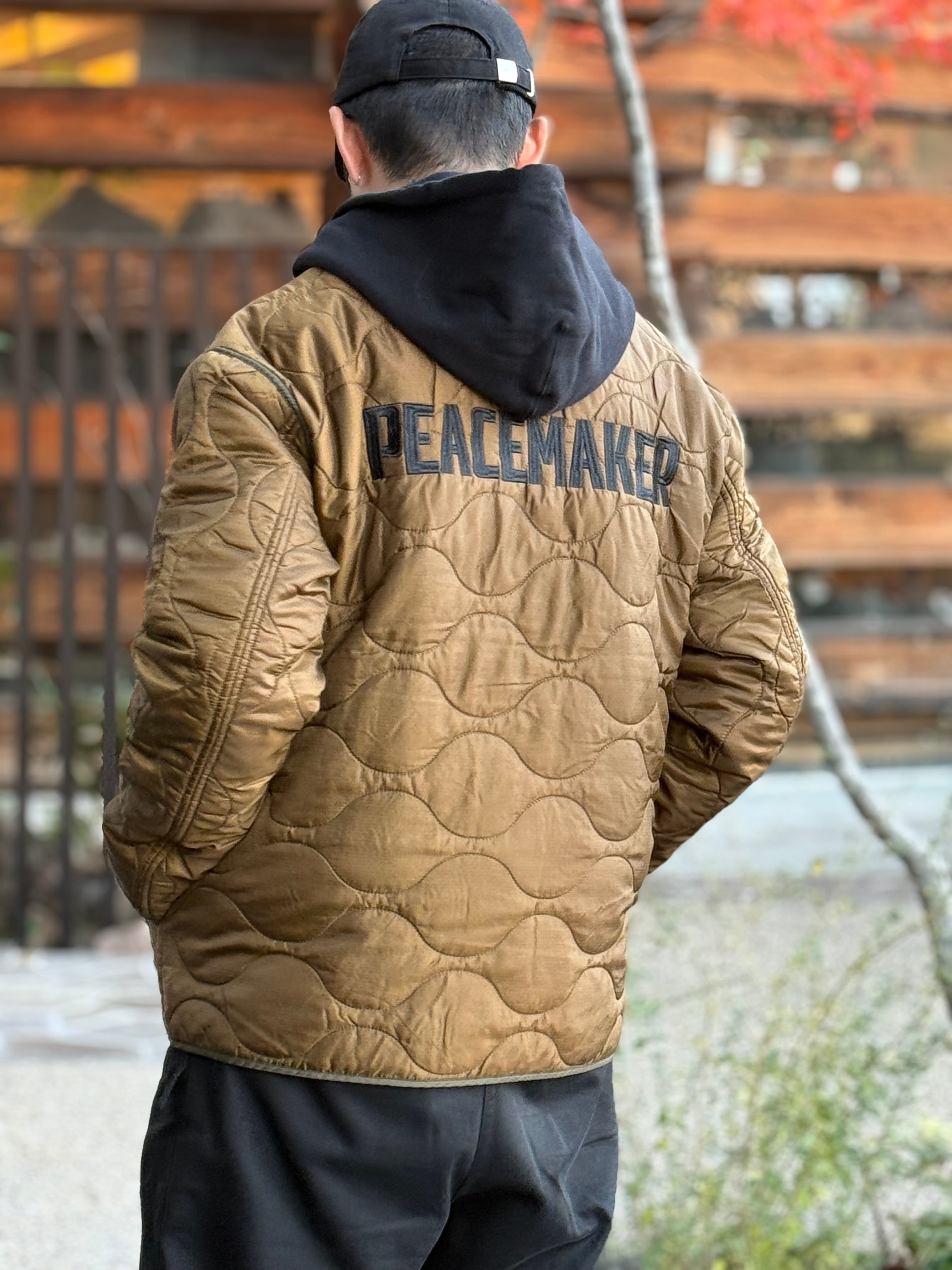 ミリタリーデザインに着想を得た機能的な衣服を新たに探求するラインOAMC PEACEMAKER。本物の素材を使用して、現代的で多用途なアイテムを生み出しています。このラインは、実用的なユーティリティ性と洗練された美学、大胆なグラフィックメッセージを融合させており、"楽観、団結、コミュニティ、存在感"といったテーマを反映しています。