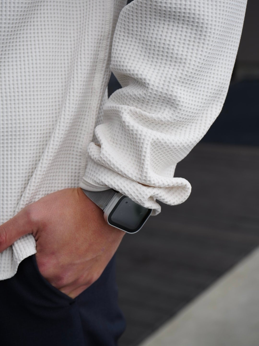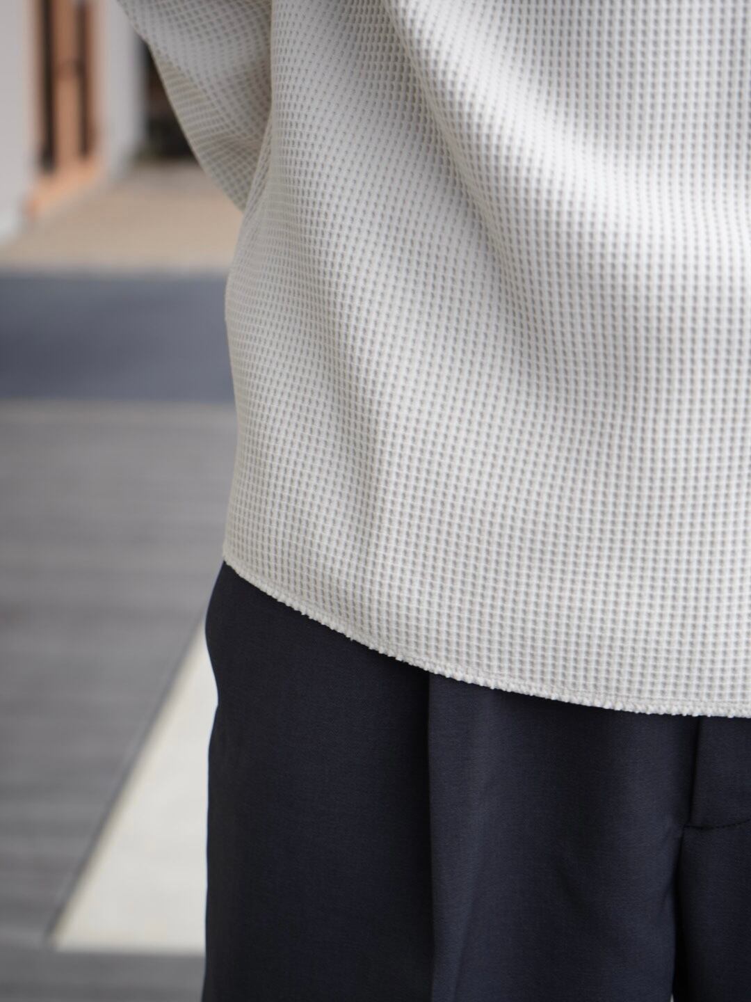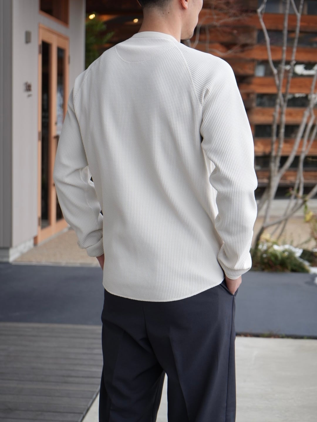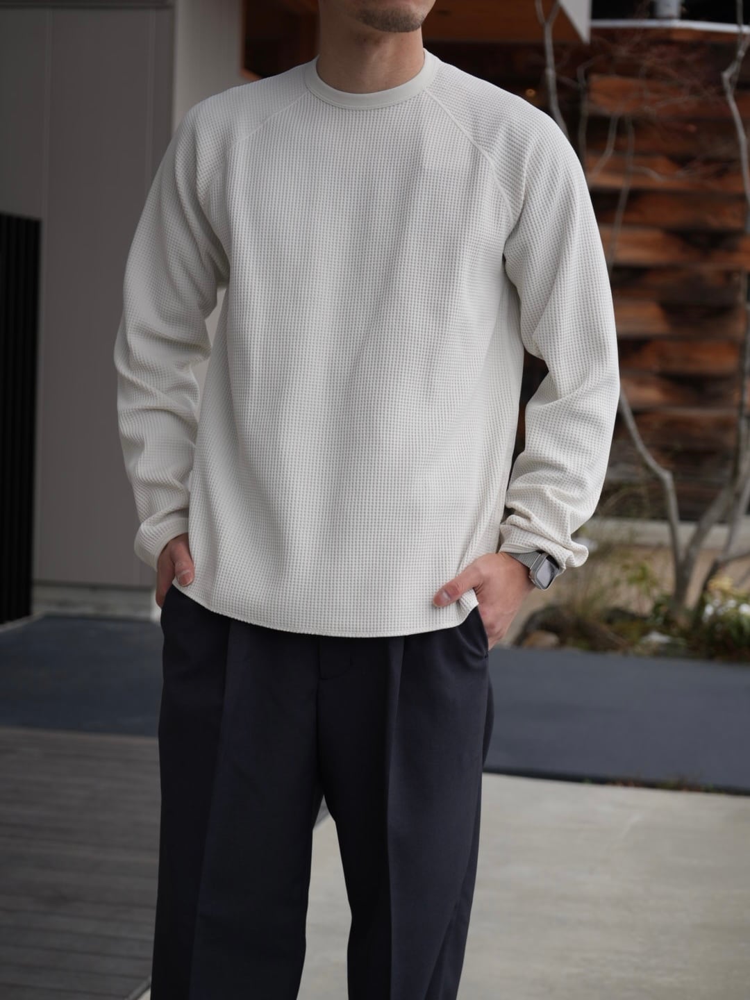 ふくらみがありながらも軽量感を備えた、サーマル生地の長袖Tシャツ。