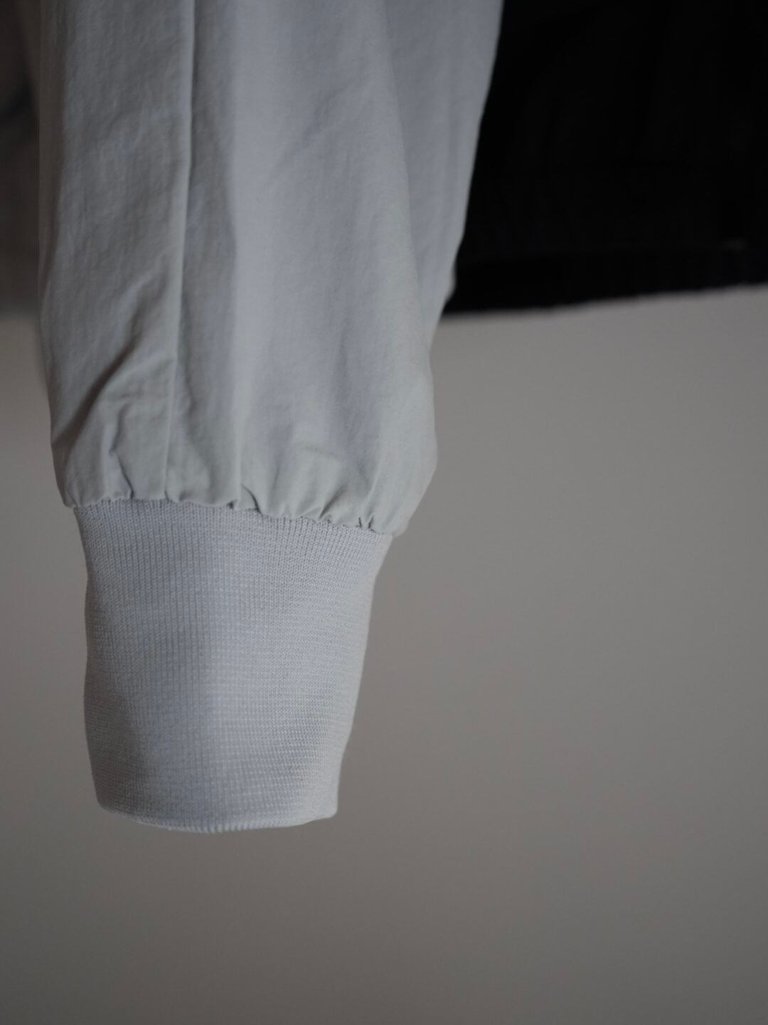 袖口はリブ仕様で、裾はバンジーコードで調整可能。