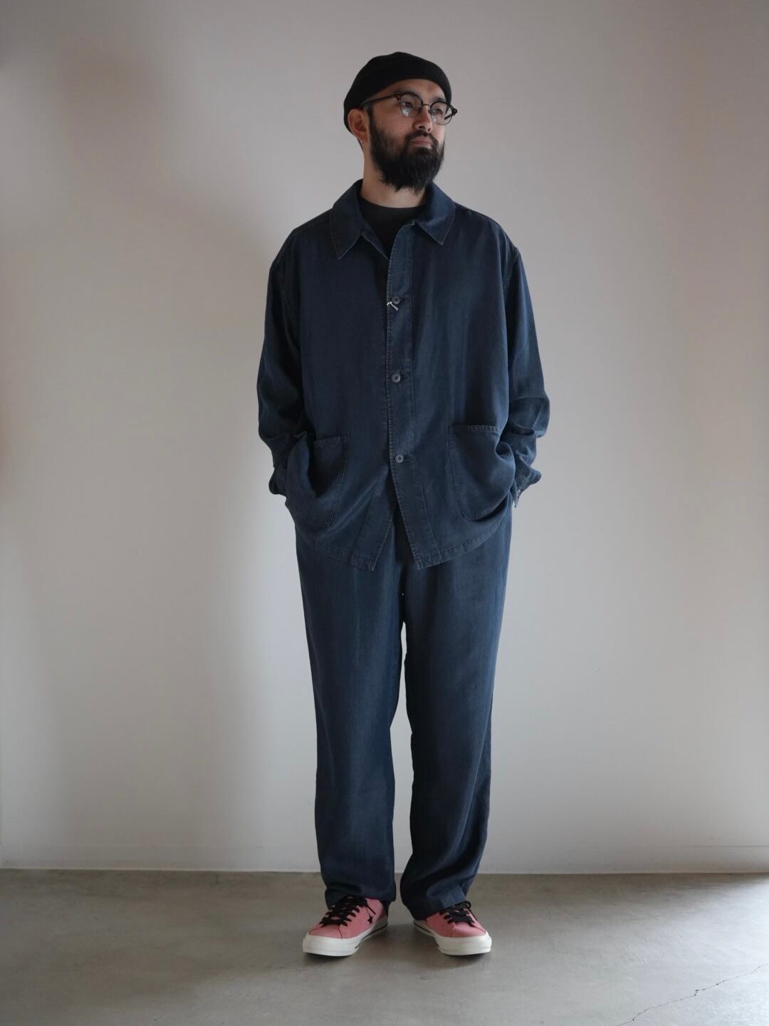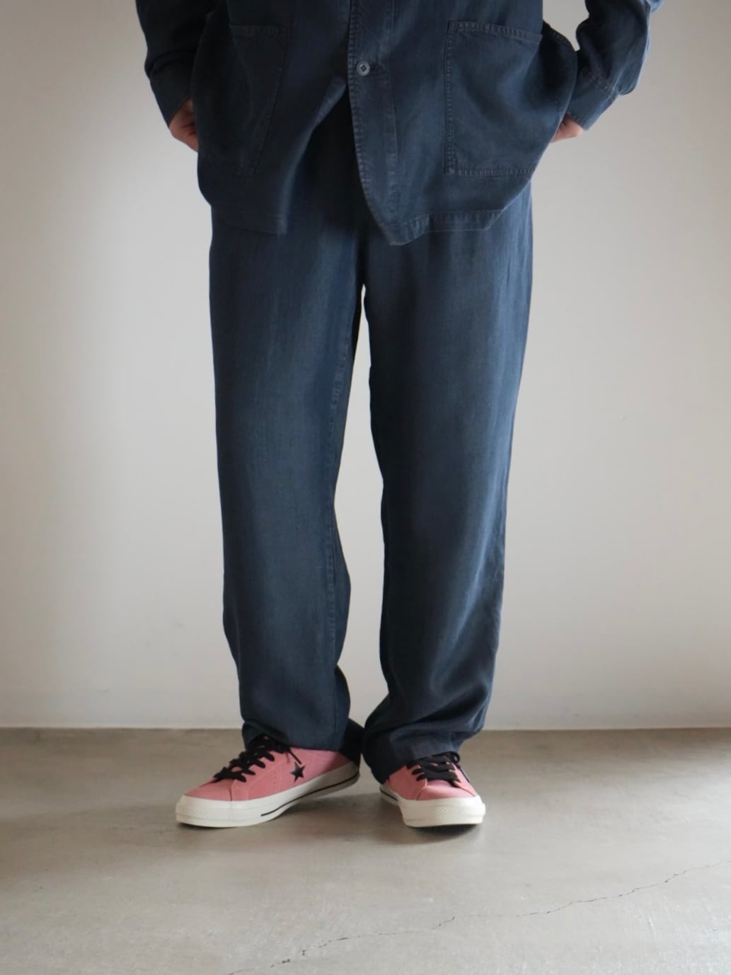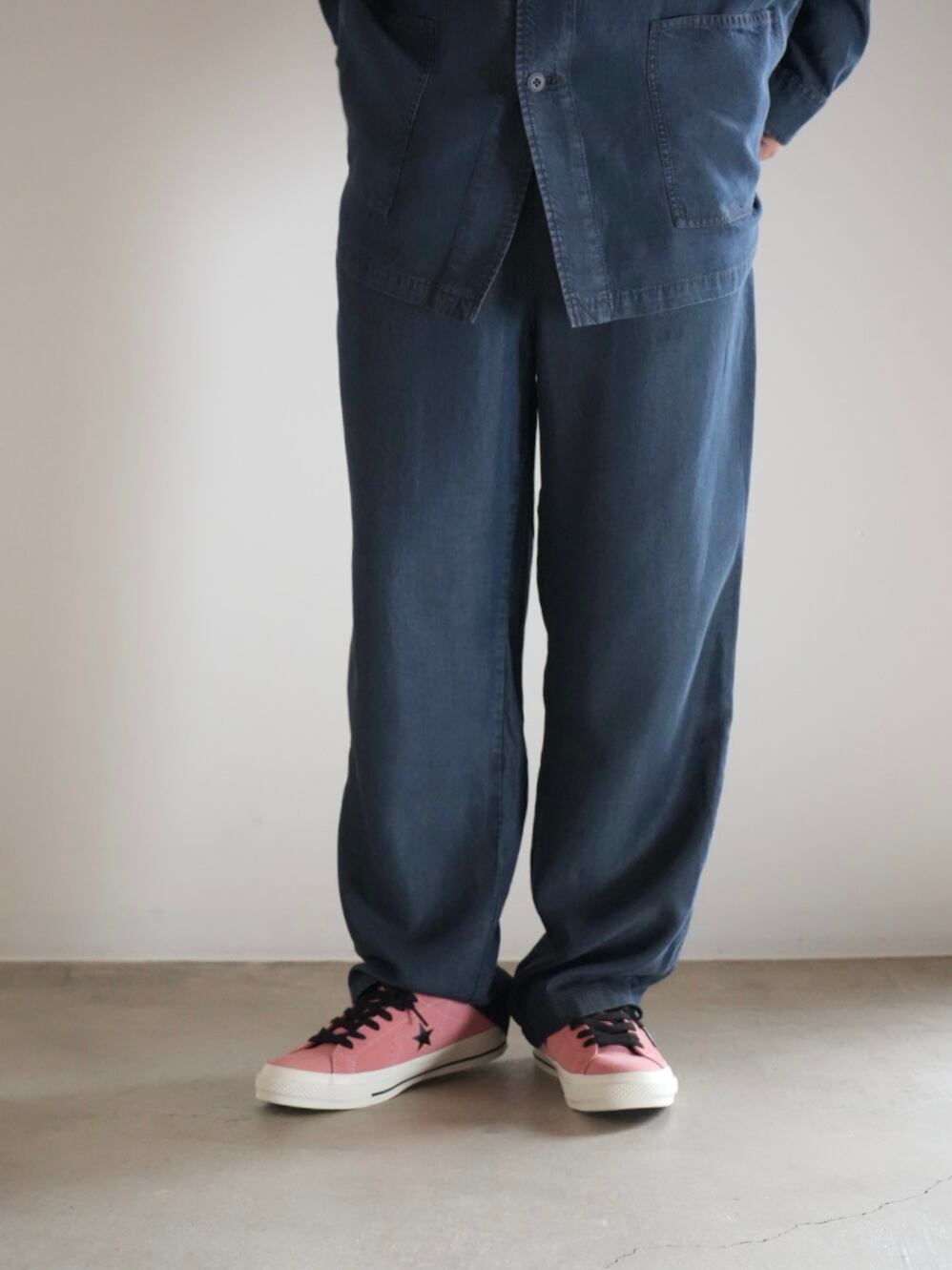 テンセルデニムを使用しており、柔らかく落ち感のある風合いが特徴でウエストがゴム仕様になっているため、快適に穿くことが出来るパンツ。