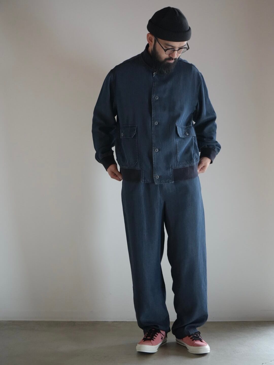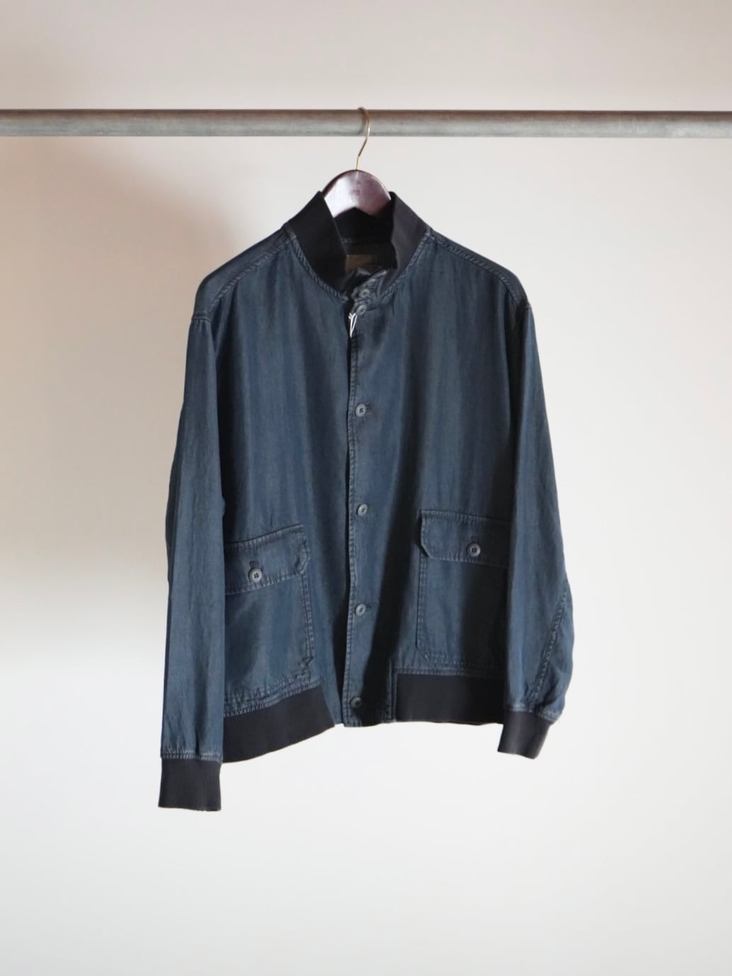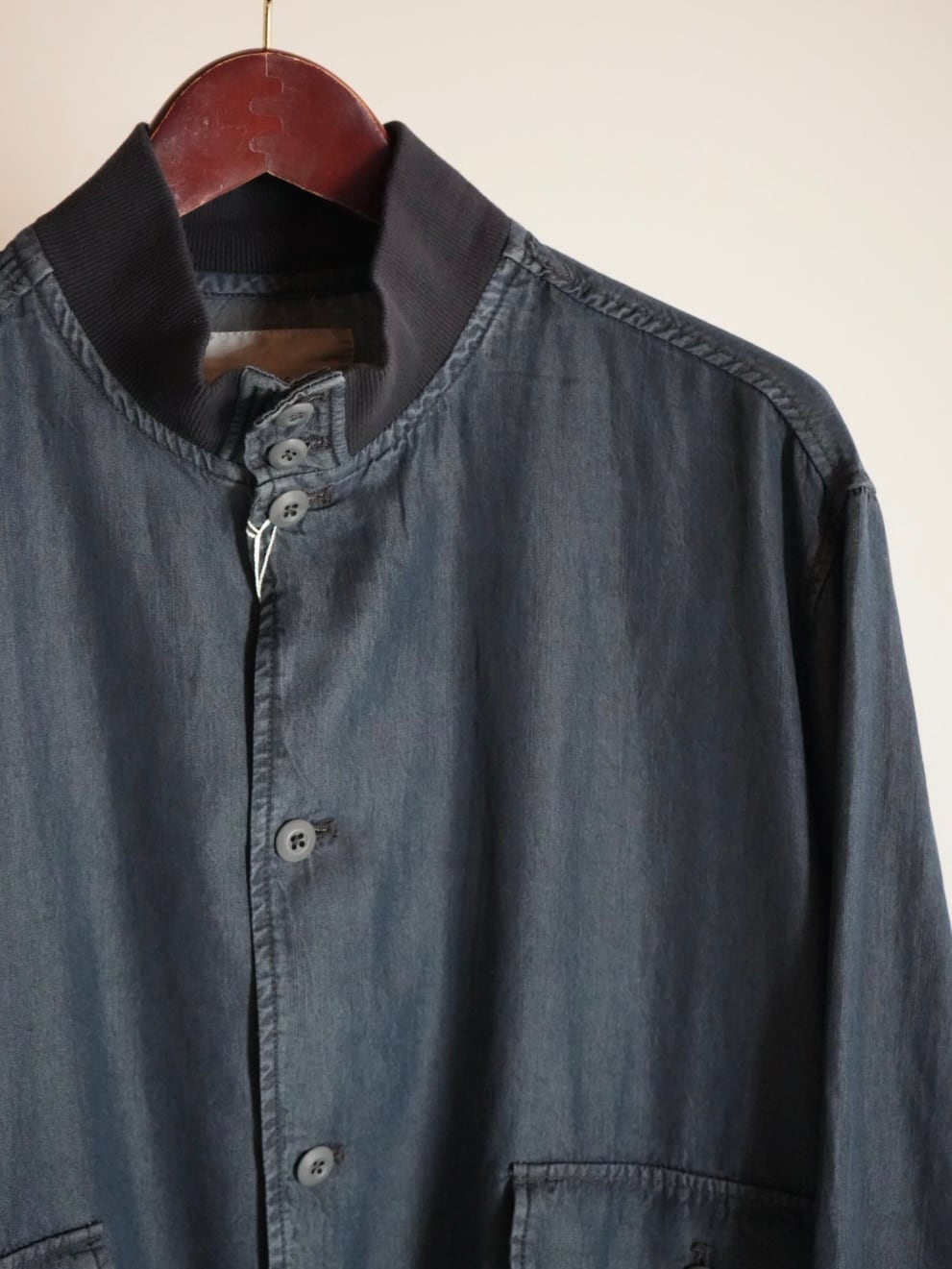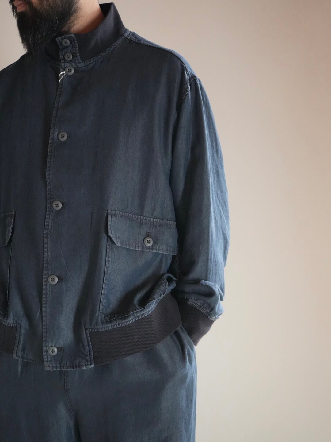 柔らかく落ち感のあるテンセルデニム生地を使用したハイネックデザインの軽く羽織れるブルゾン。