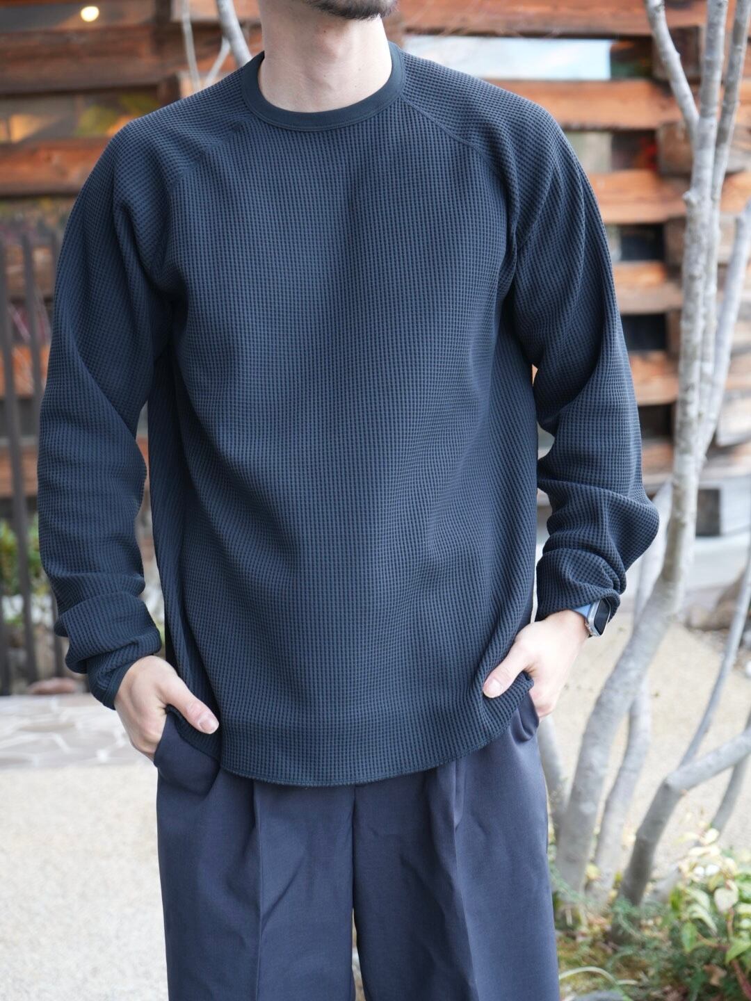 ふくらみがありながらも軽量感を備えた、サーマル生地の長袖Tシャツ。