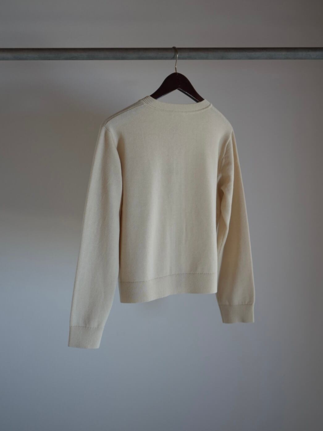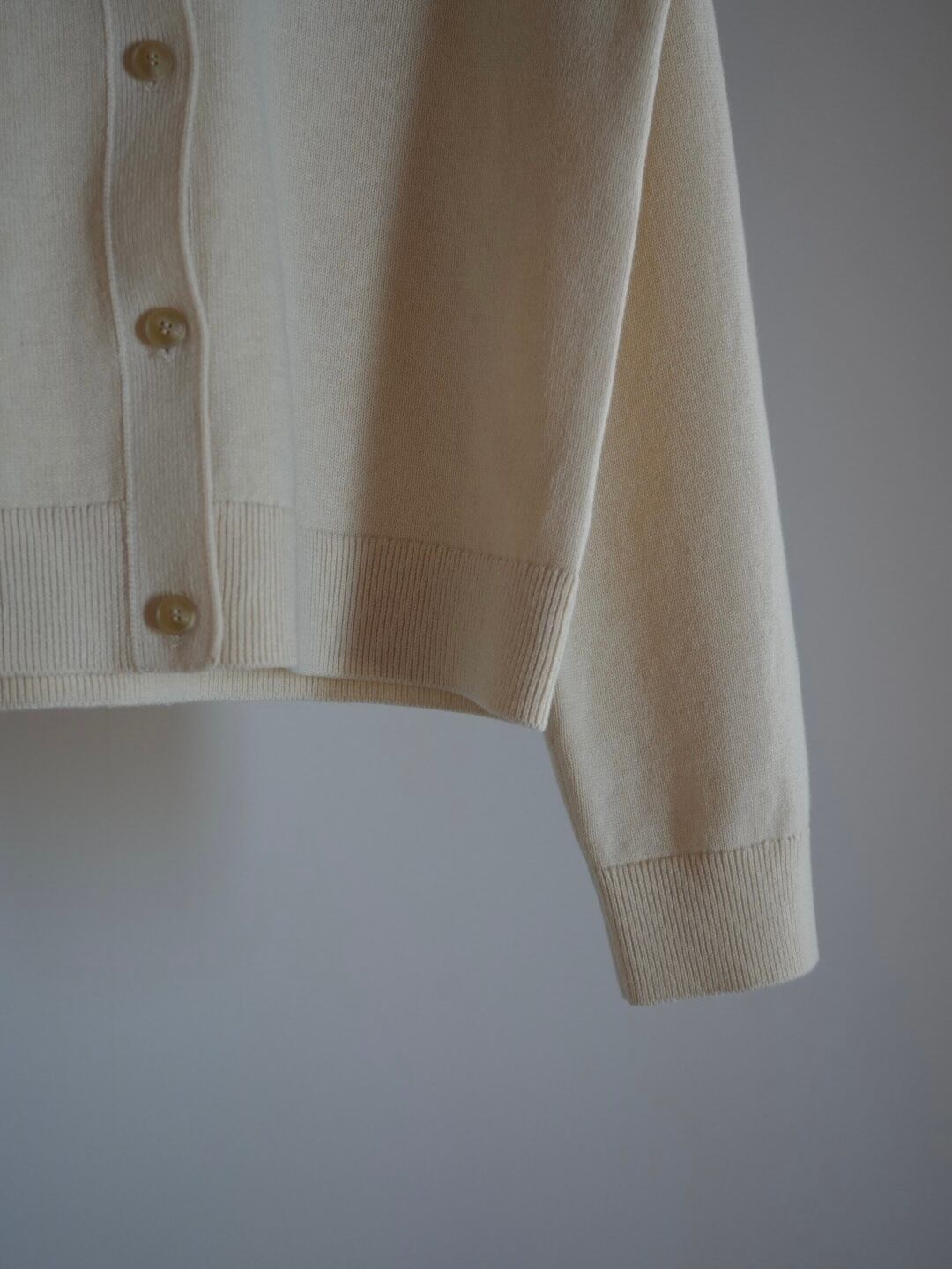 ウール/コットンのクルーネックカーディガン。