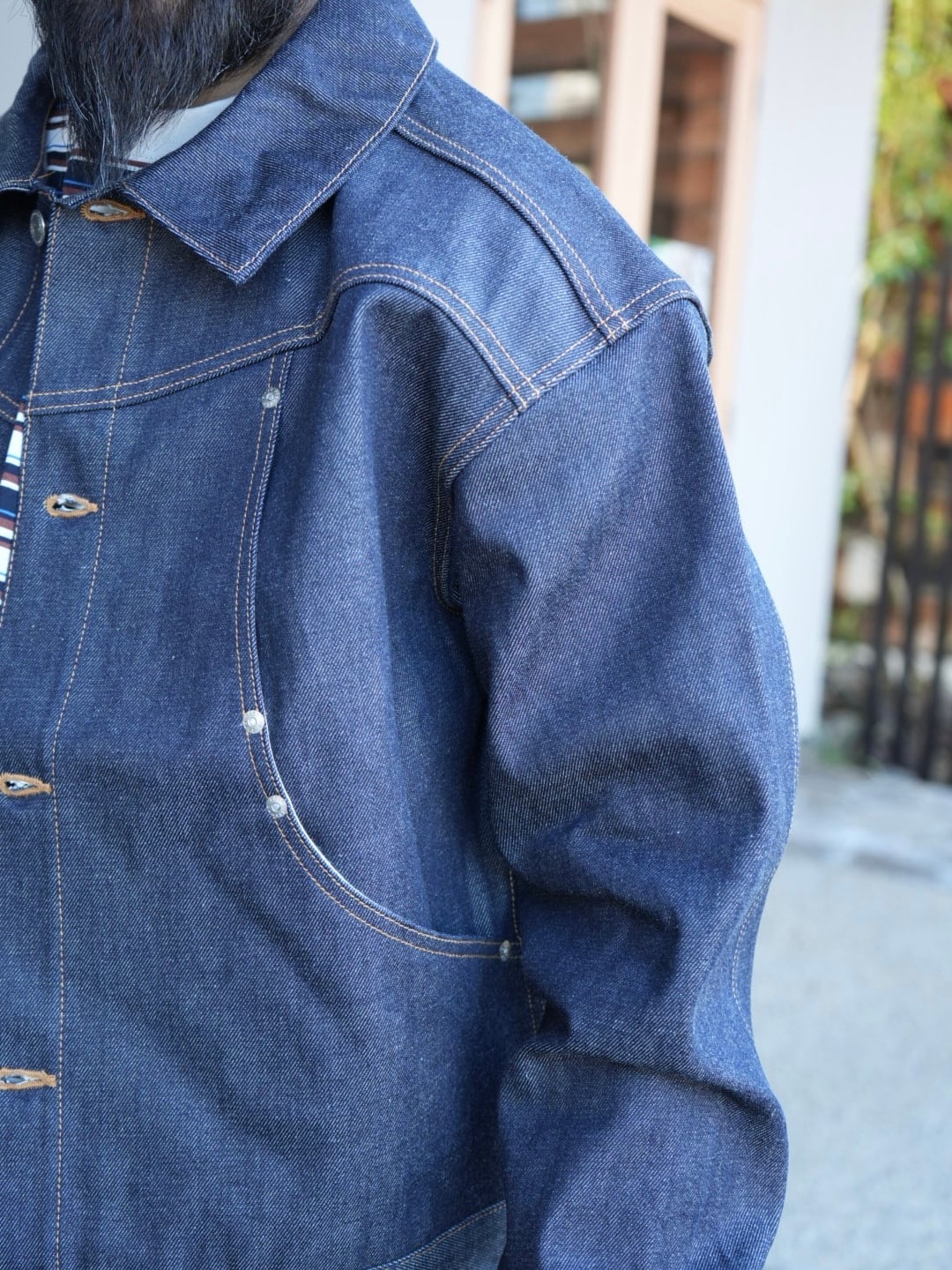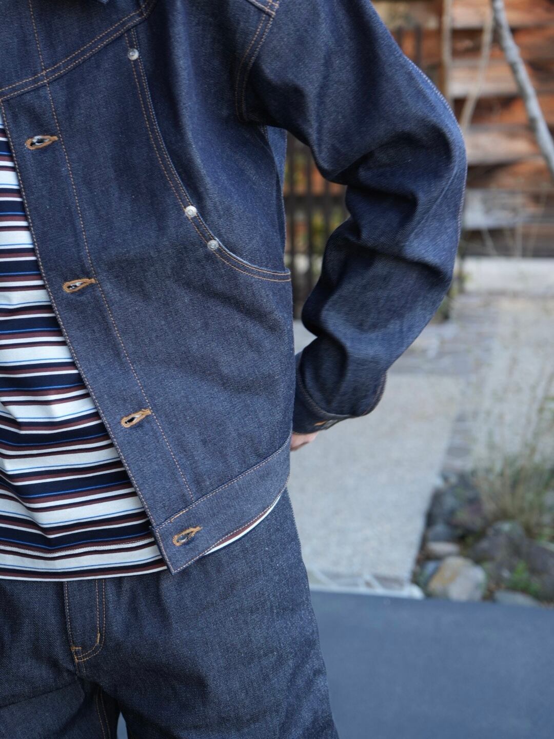 ボックスシルエットなので重ね着もしやすく着やすいので、初めてリジットデニムに挑戦したい方、他と被りたくない方にもオススメです。