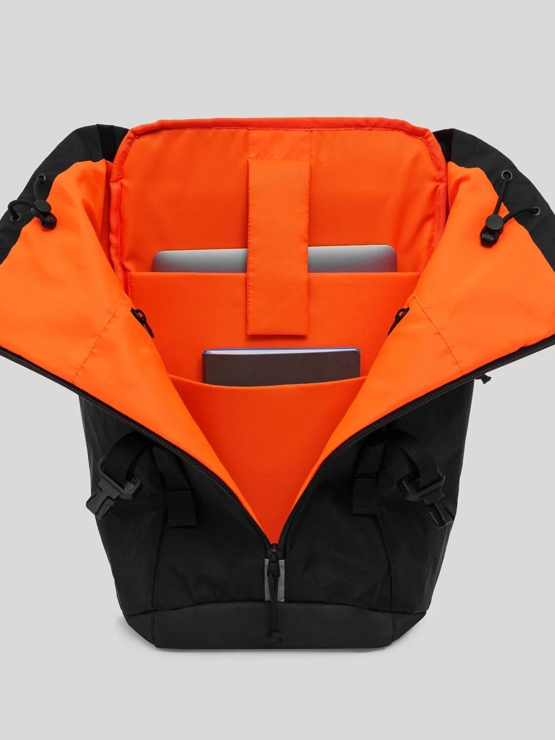 ノートPCや充電器、書籍、水筒、財布、鍵のような小物を仕分けられる収納力、