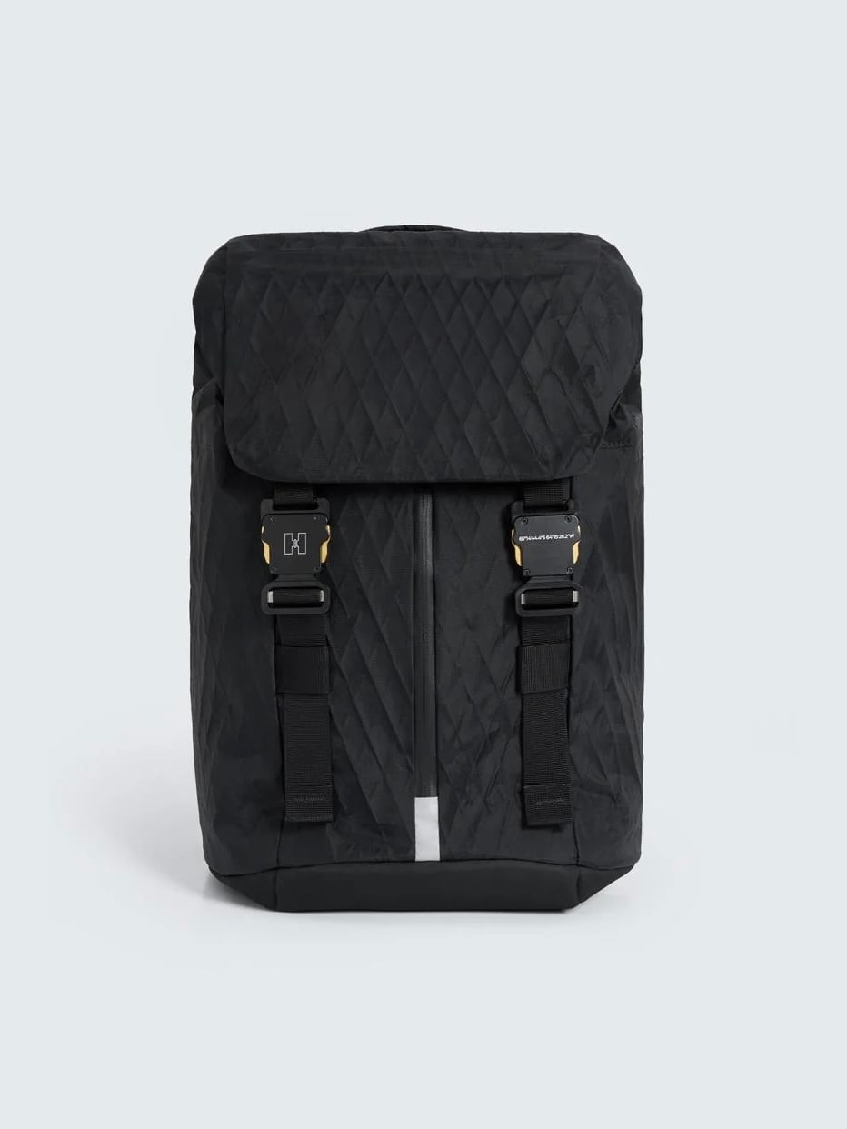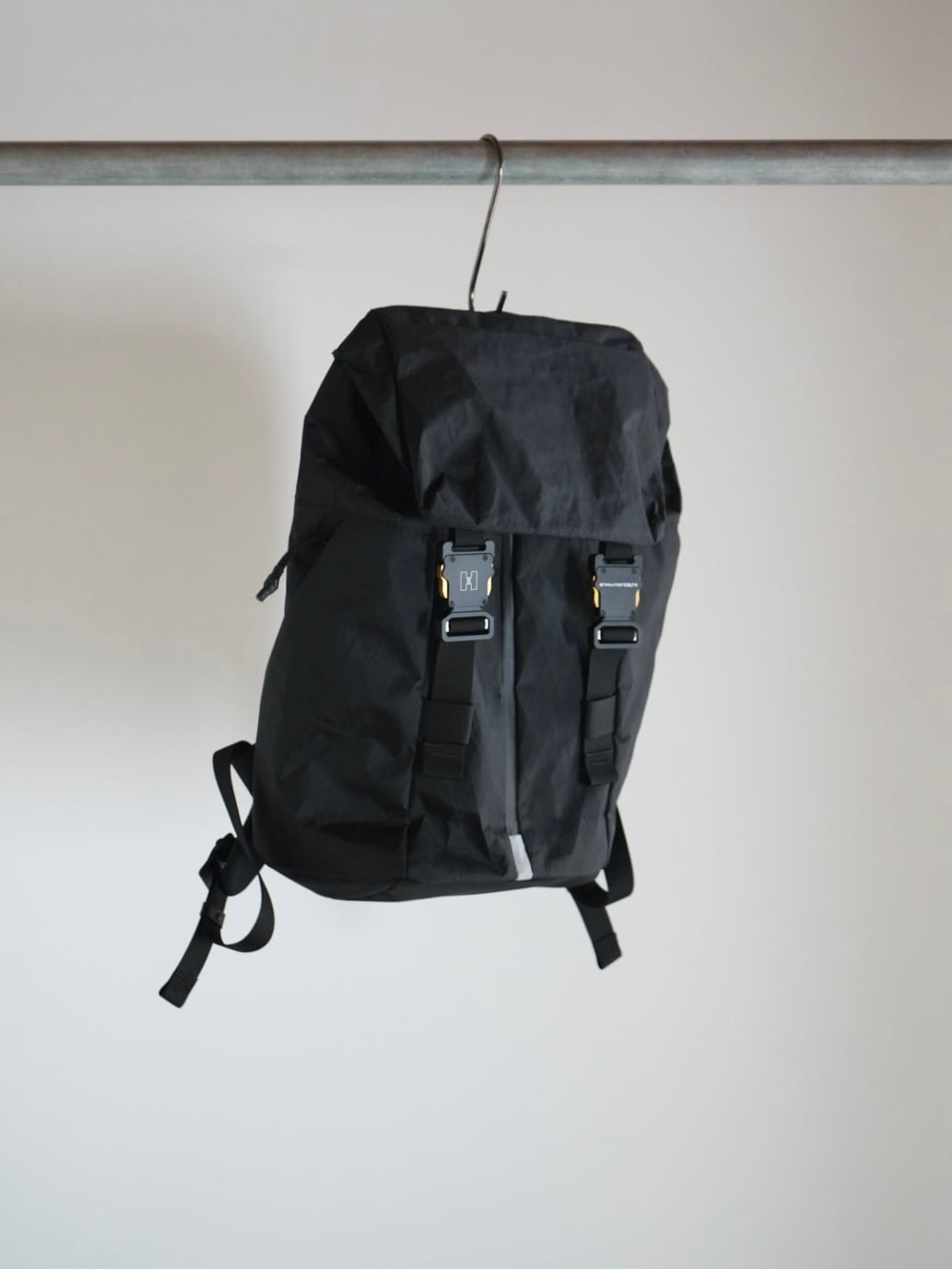 ナイロンの表地、ポリエステルメッシュによる補強、防水フィルムの3層構造。