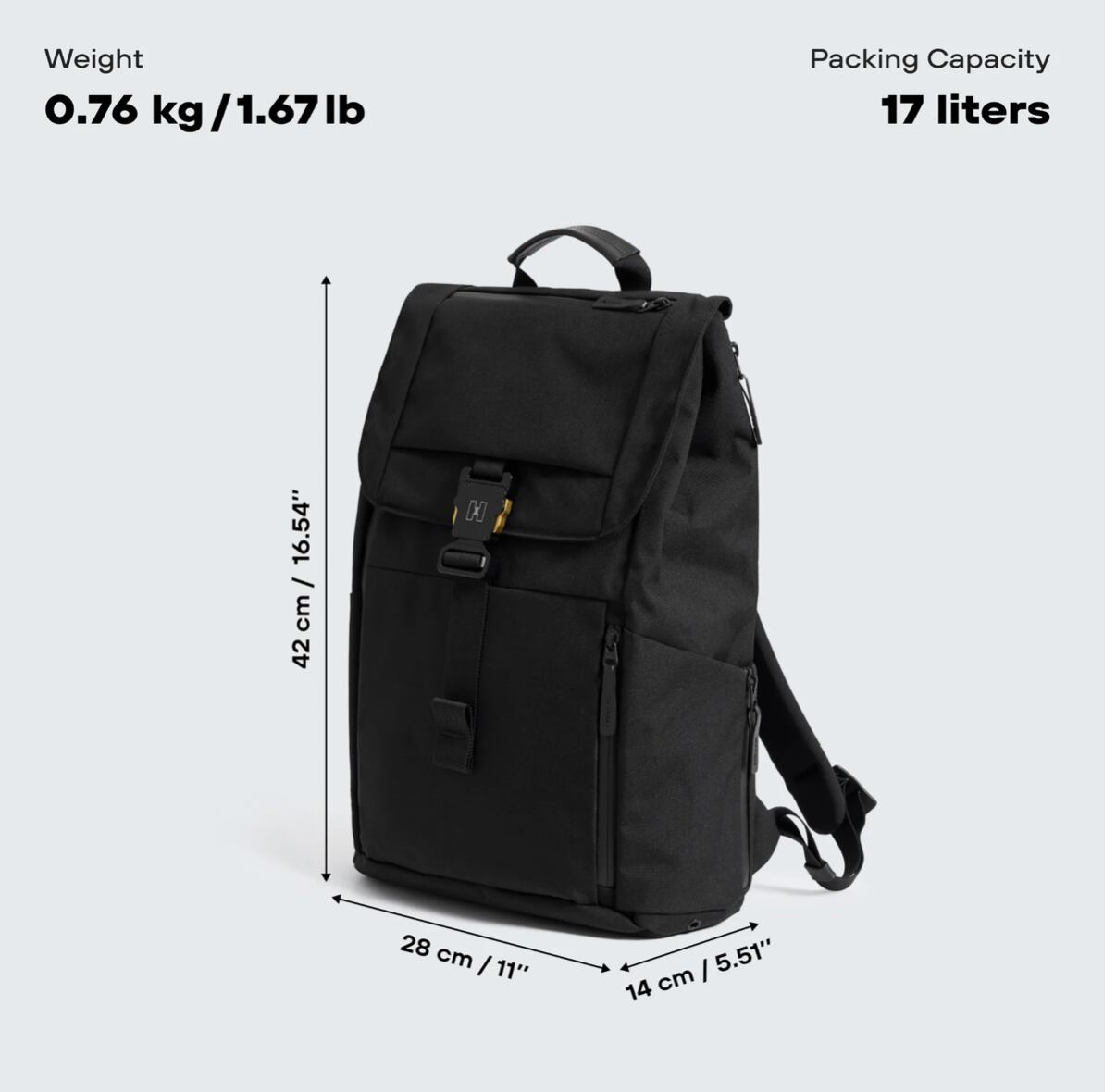 各種デバイス、充電器、書籍、着替えなどを入れられる容量です。