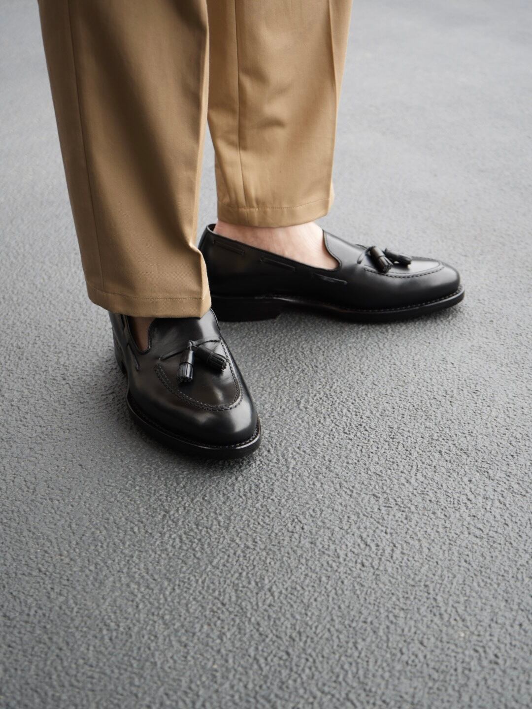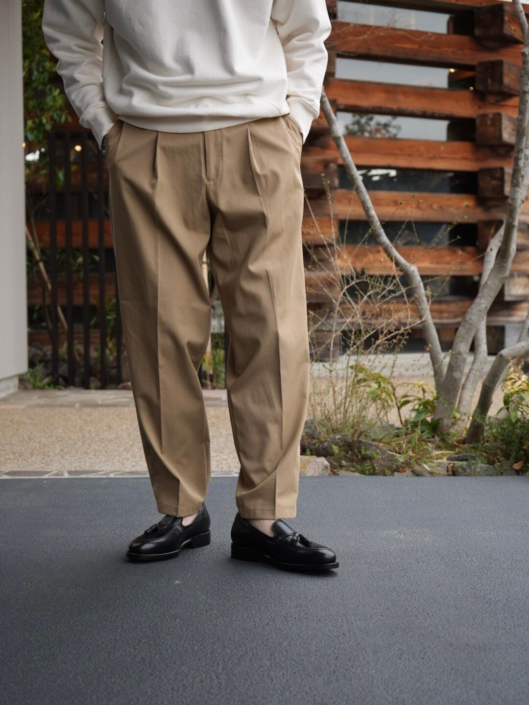 1タックの効いたゆとりのある腰回りから綺麗なテーパードは、