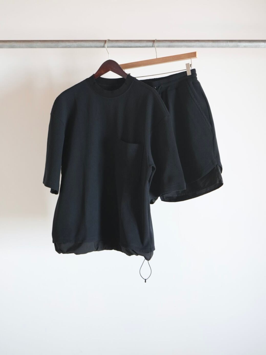 裾が二重に重なり合った特徴的なディテールでアクセントの効いたワッフルTシャツ。