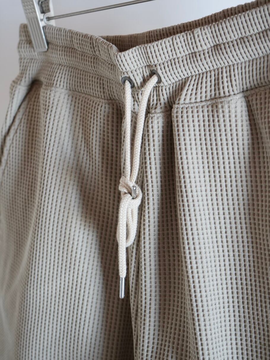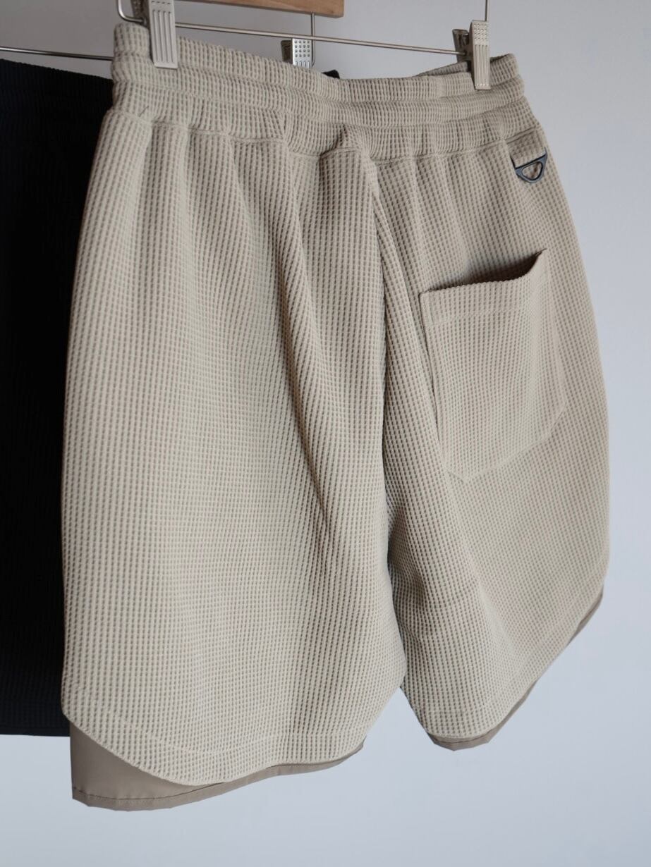 裾が二重に重なり合った特徴的なディテールでアクセントの効いたワッフルショートパンツ。