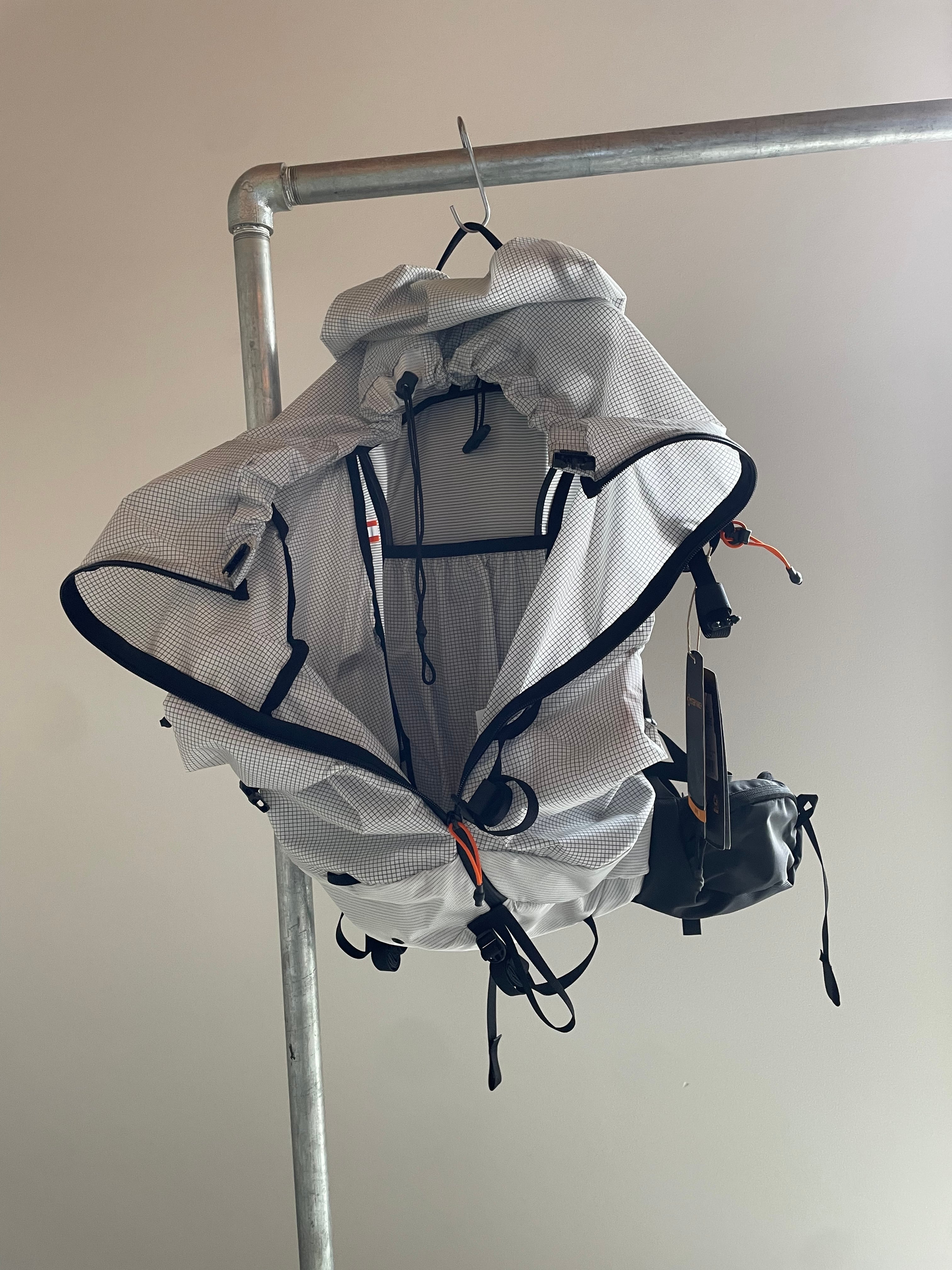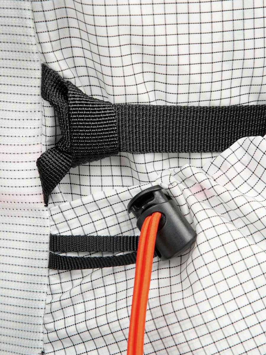 ・圧縮しやすいフロントとサイドのポケットには、薄手のレイヤリングや水筒、出し入れの頻度の高いアイテムの収納に最適