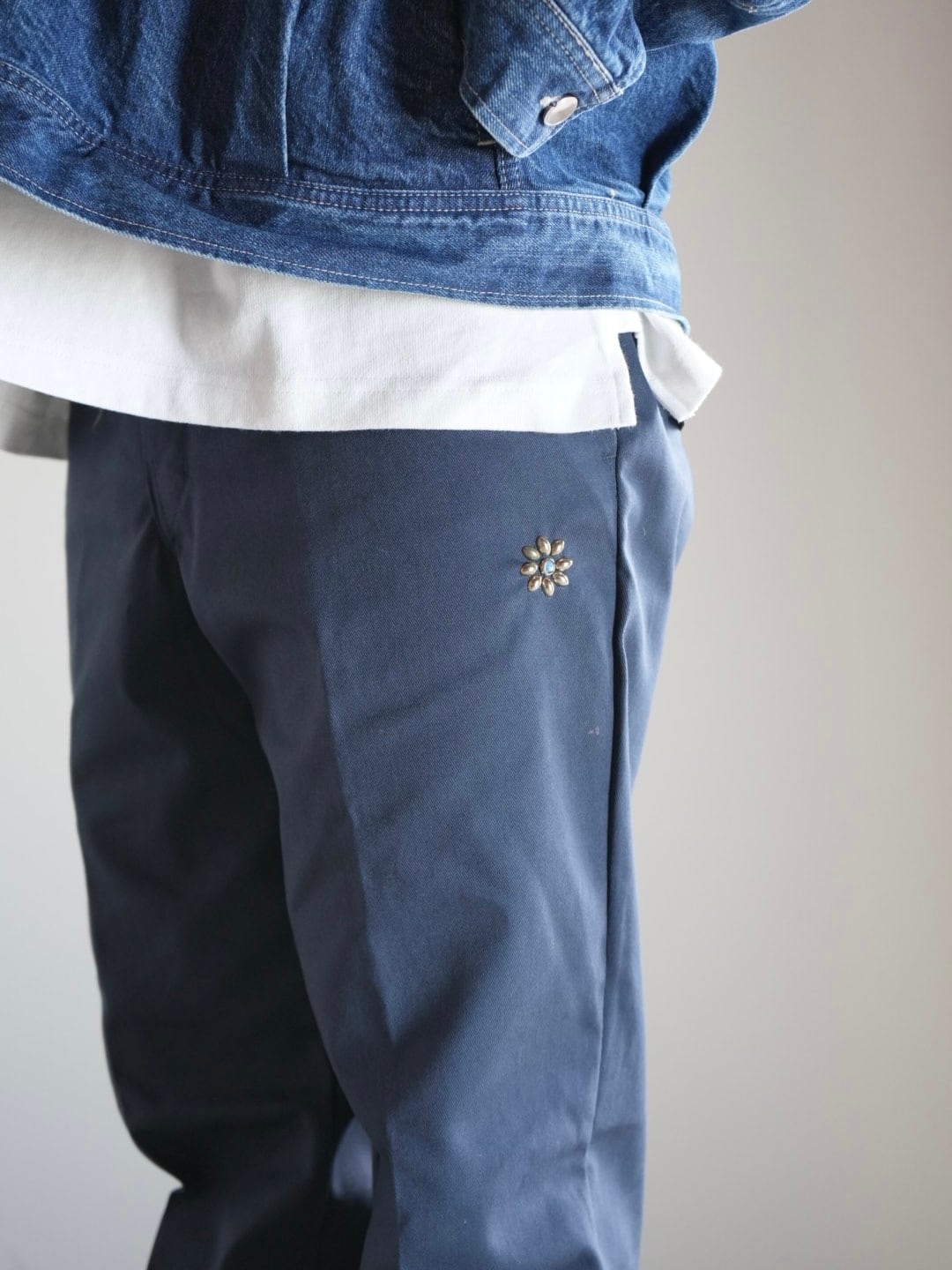 Item :フラワーターコイズ スタッズ ワークパンツ