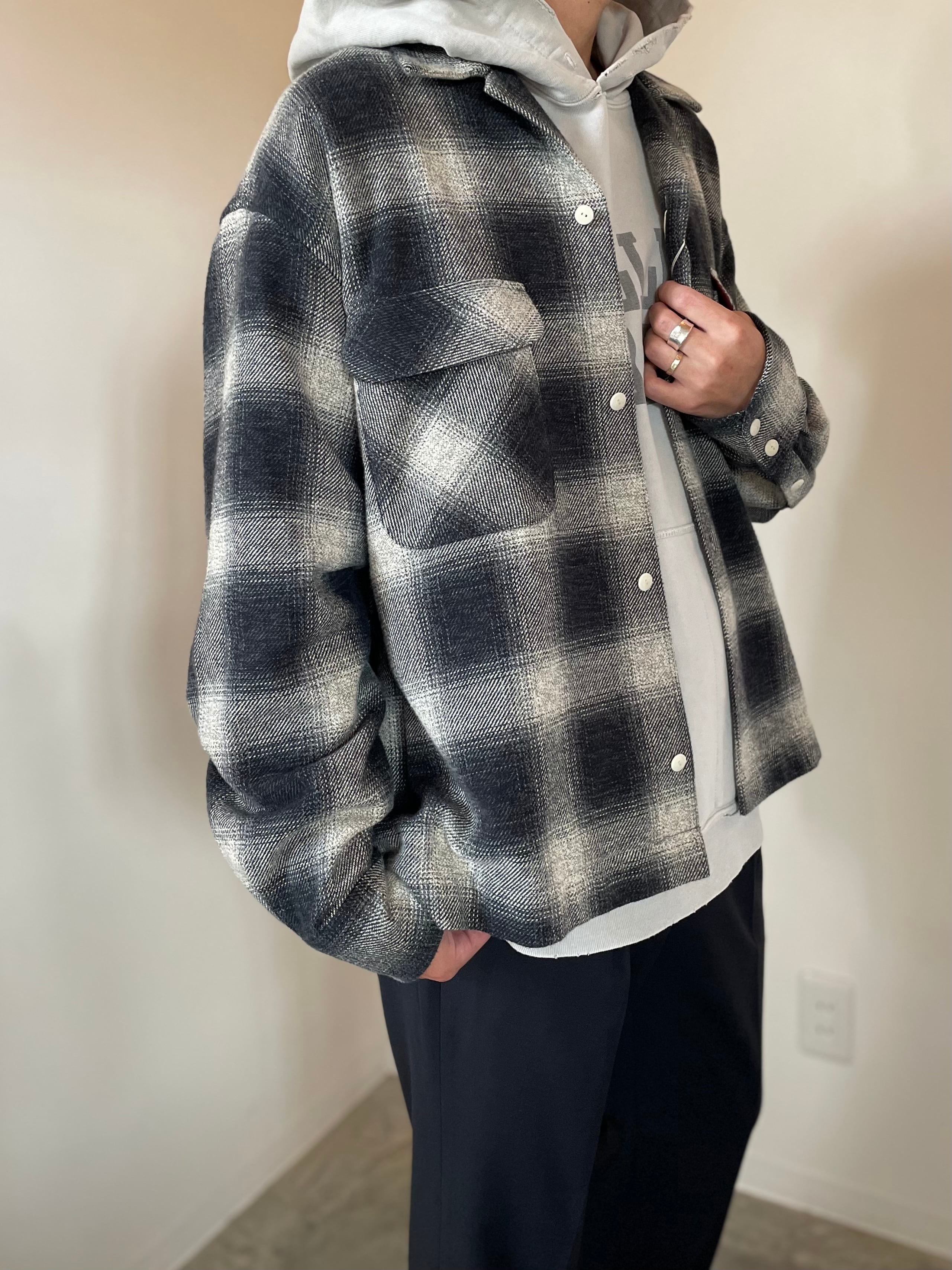 H.UNIT【Ombre check open collar L/S shirt】