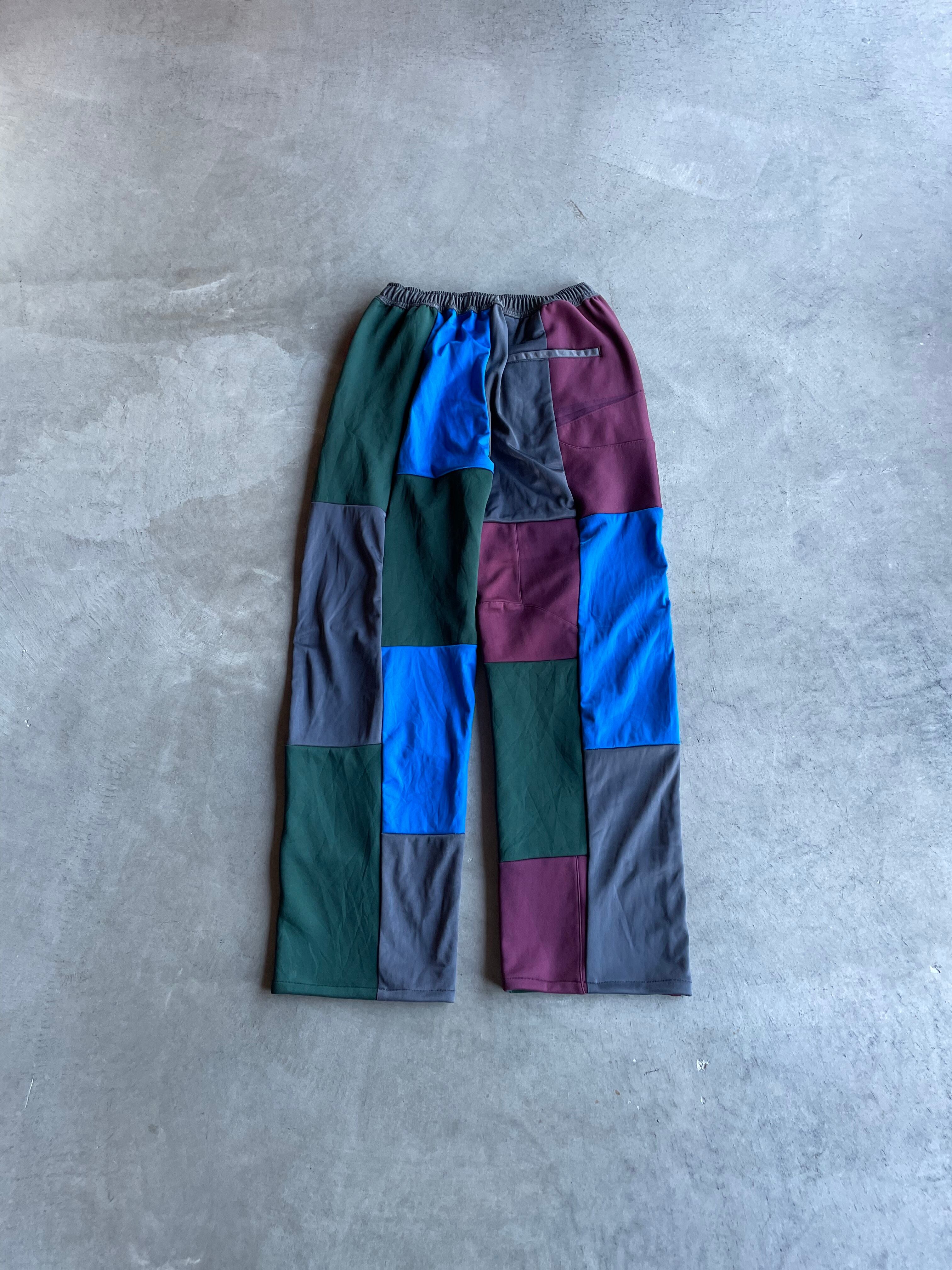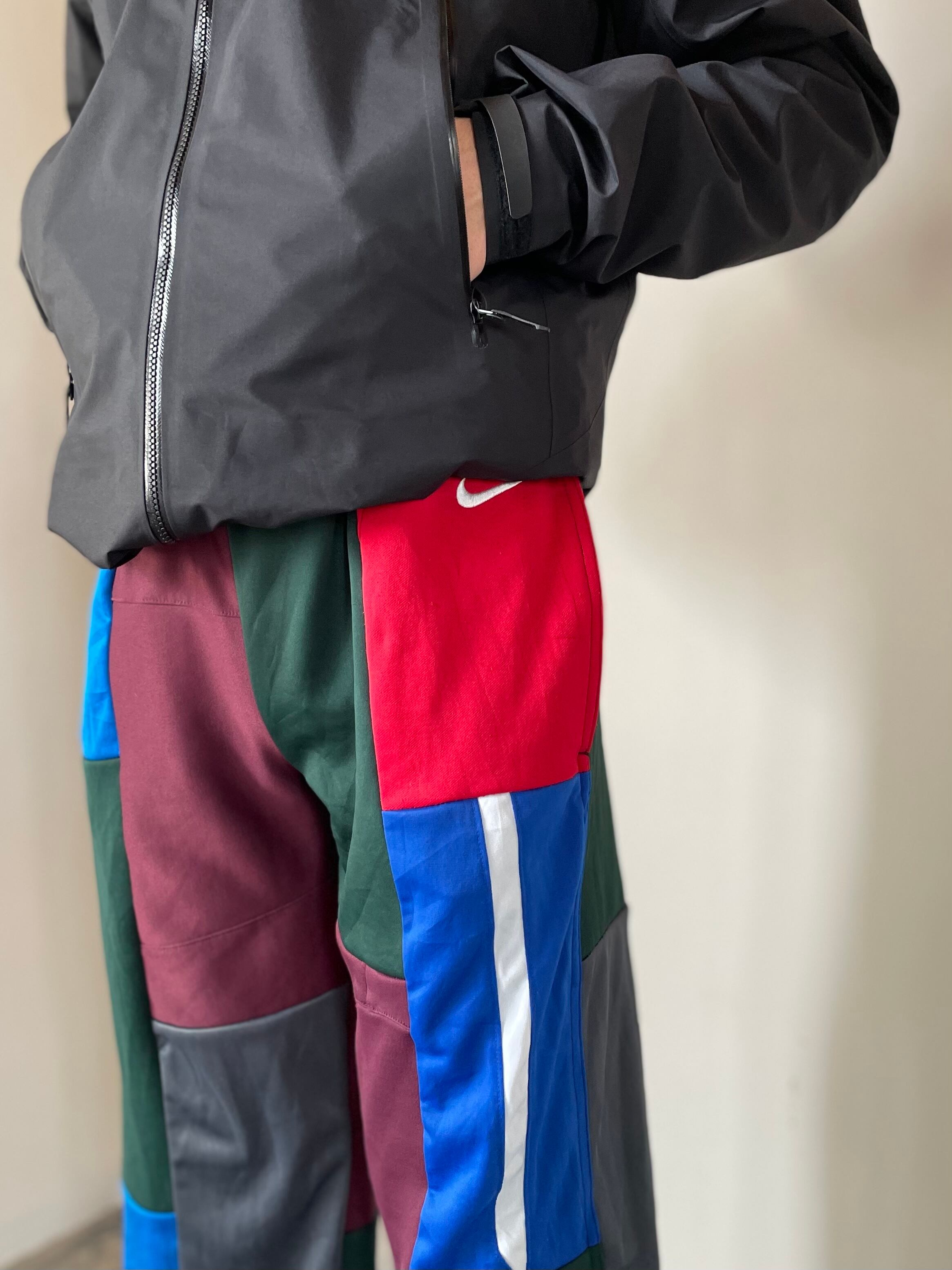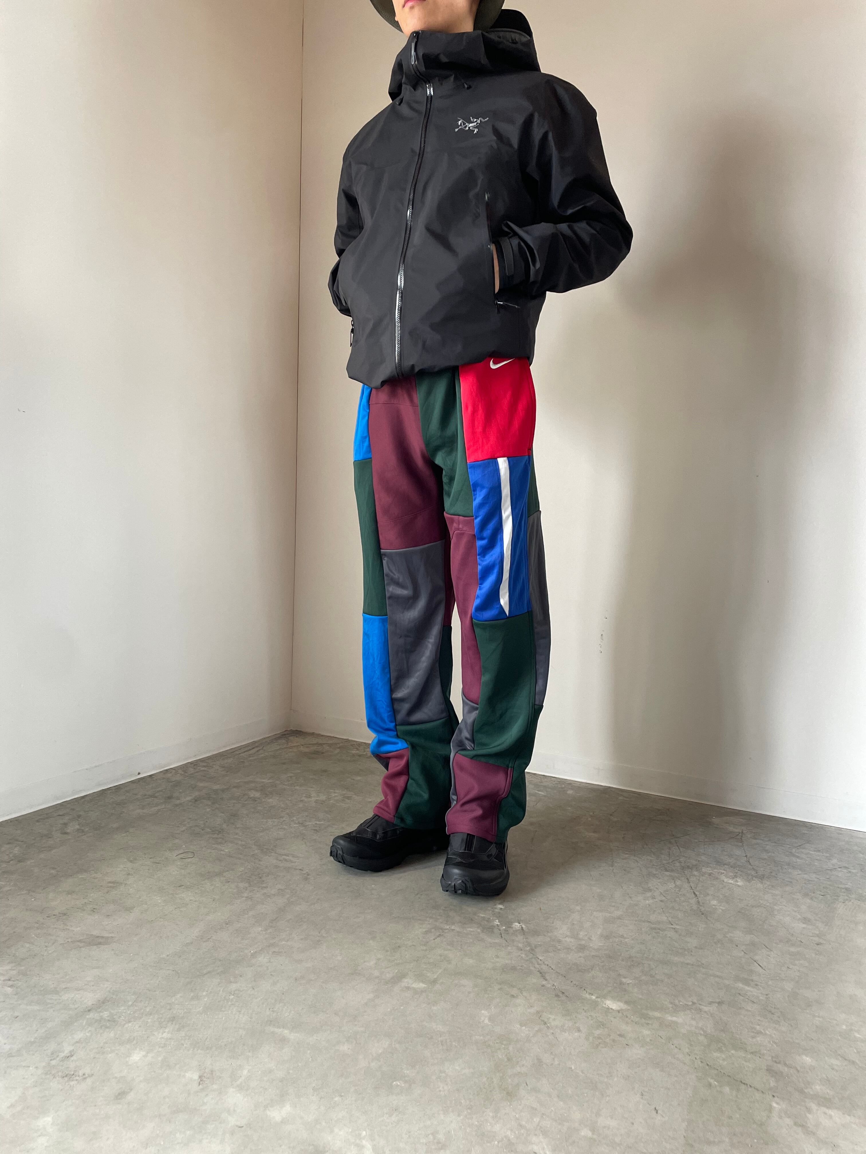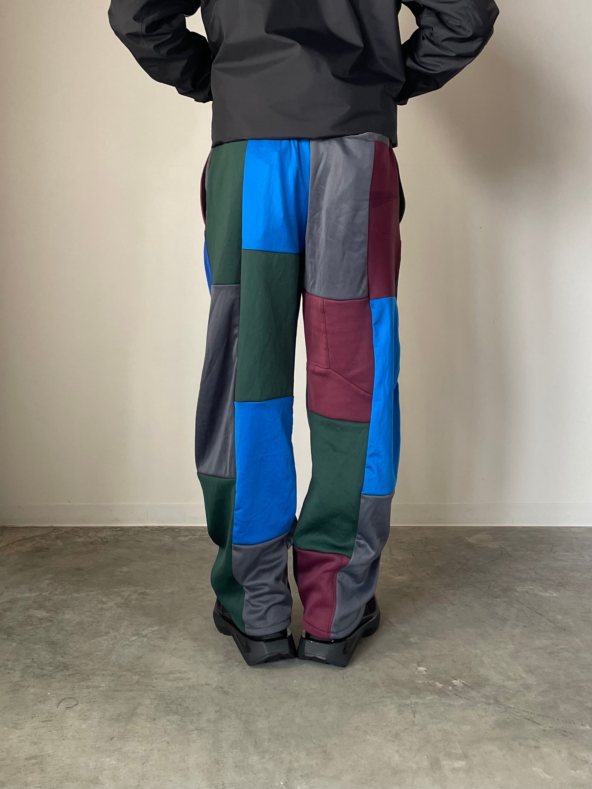 usedのスポーツジャージをバラし、パッチワークにしてイージータイプのパンツに